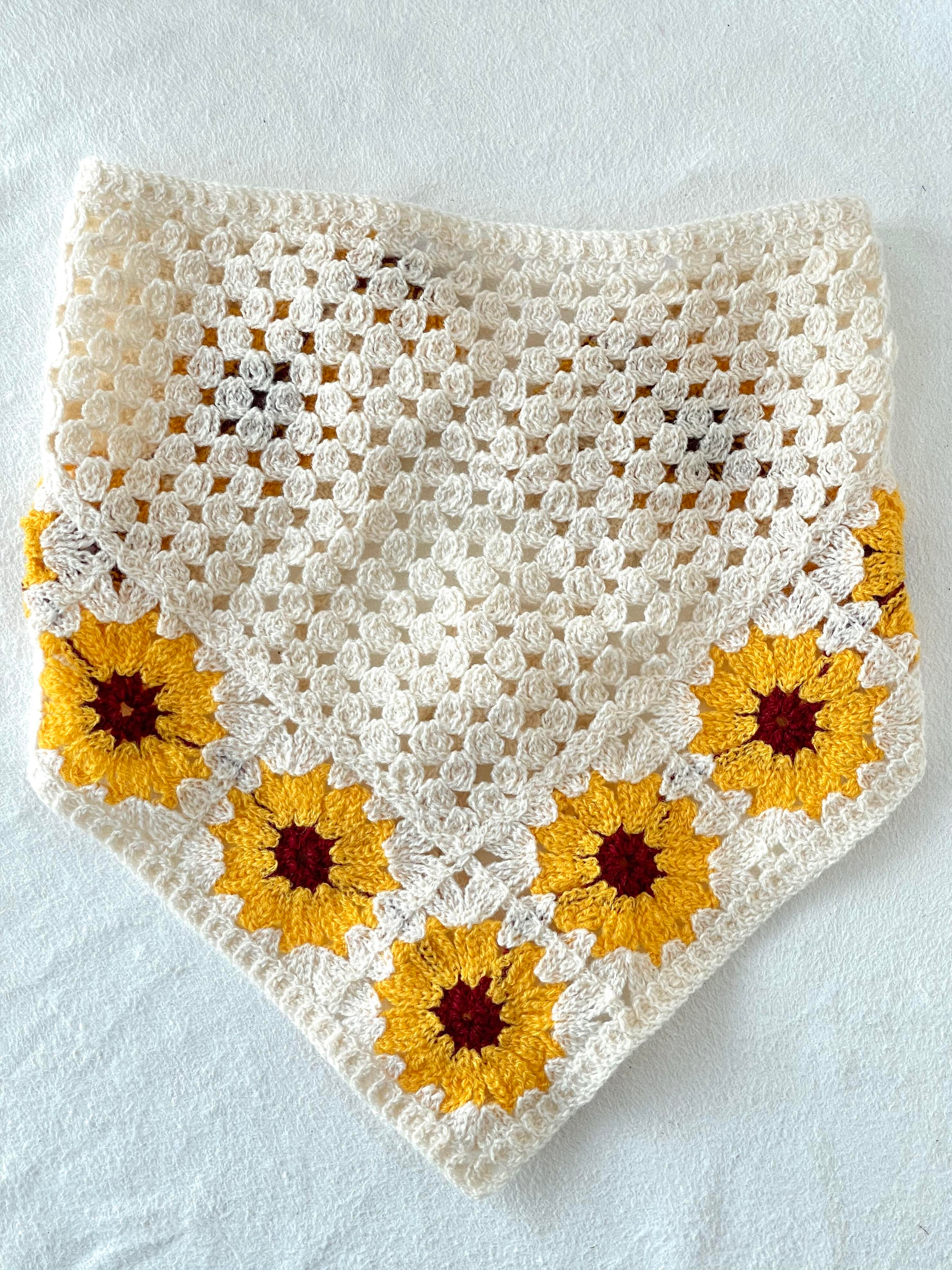 Çiçek Kenarlı Örgü Bandana Sarı