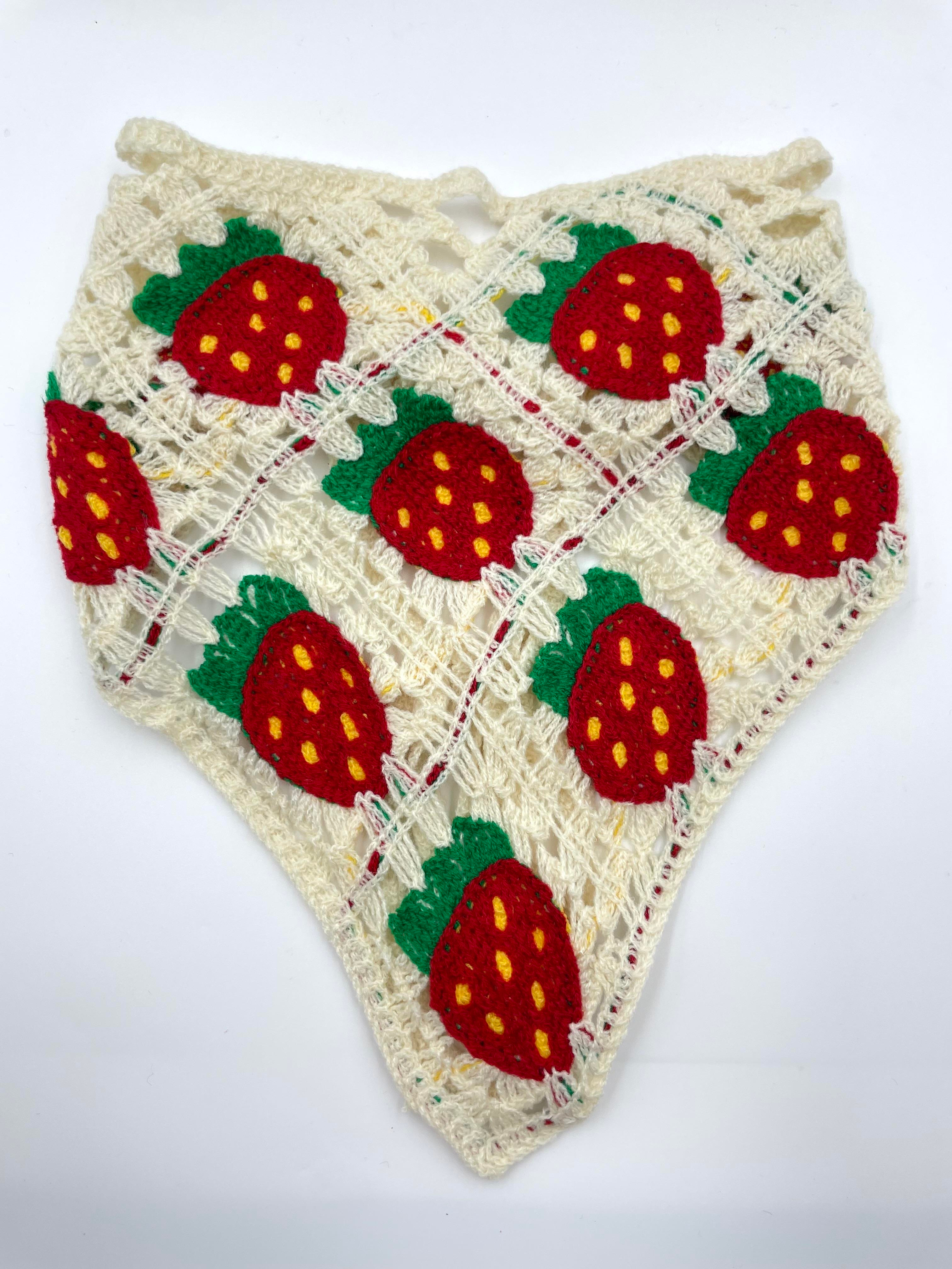 Çilek Desenli Örgü Bandana Ekru (20418)