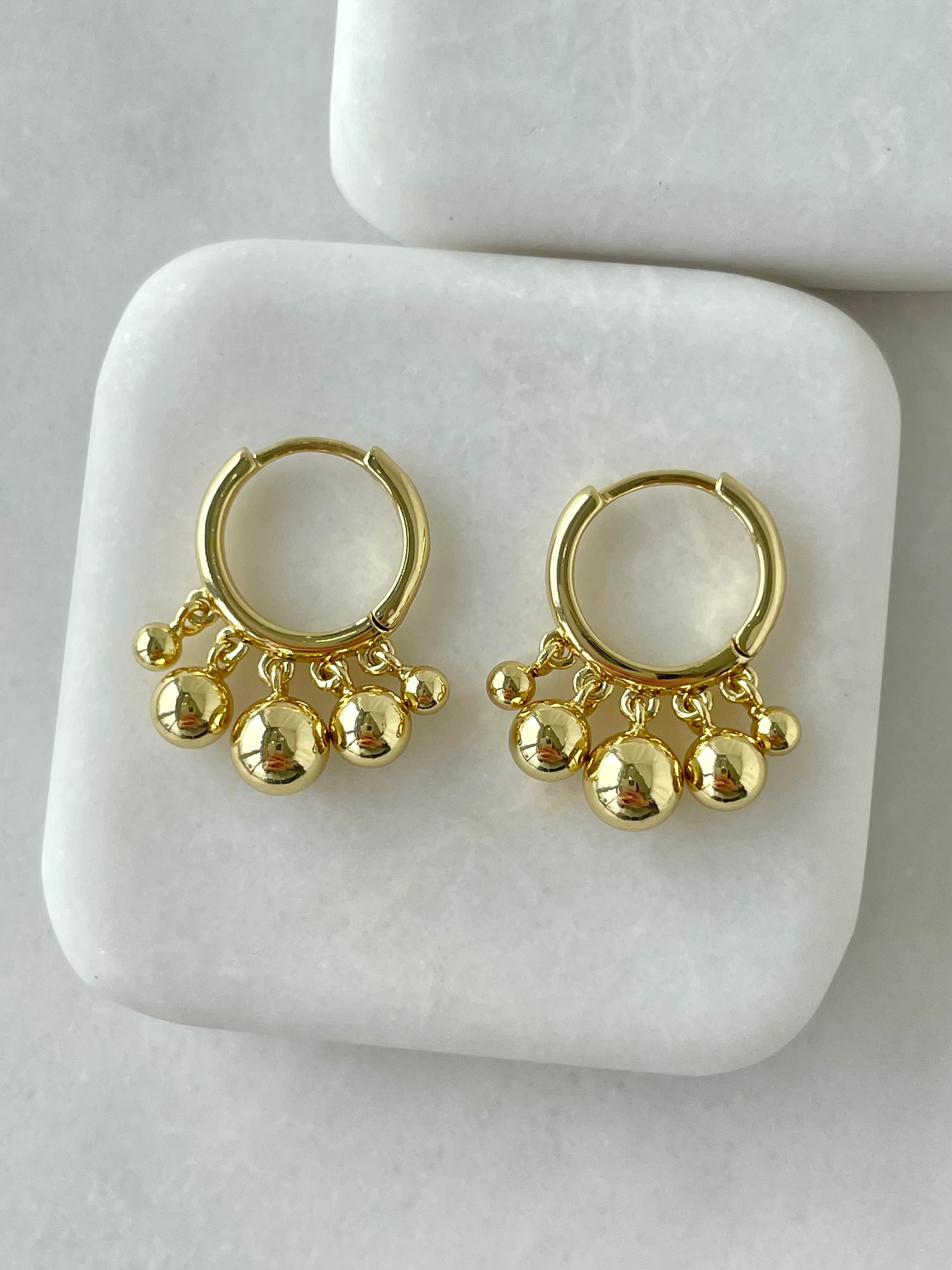 Özel Seri Büyük Küçük Topçuk Sallantılı Halka Küpe Gold