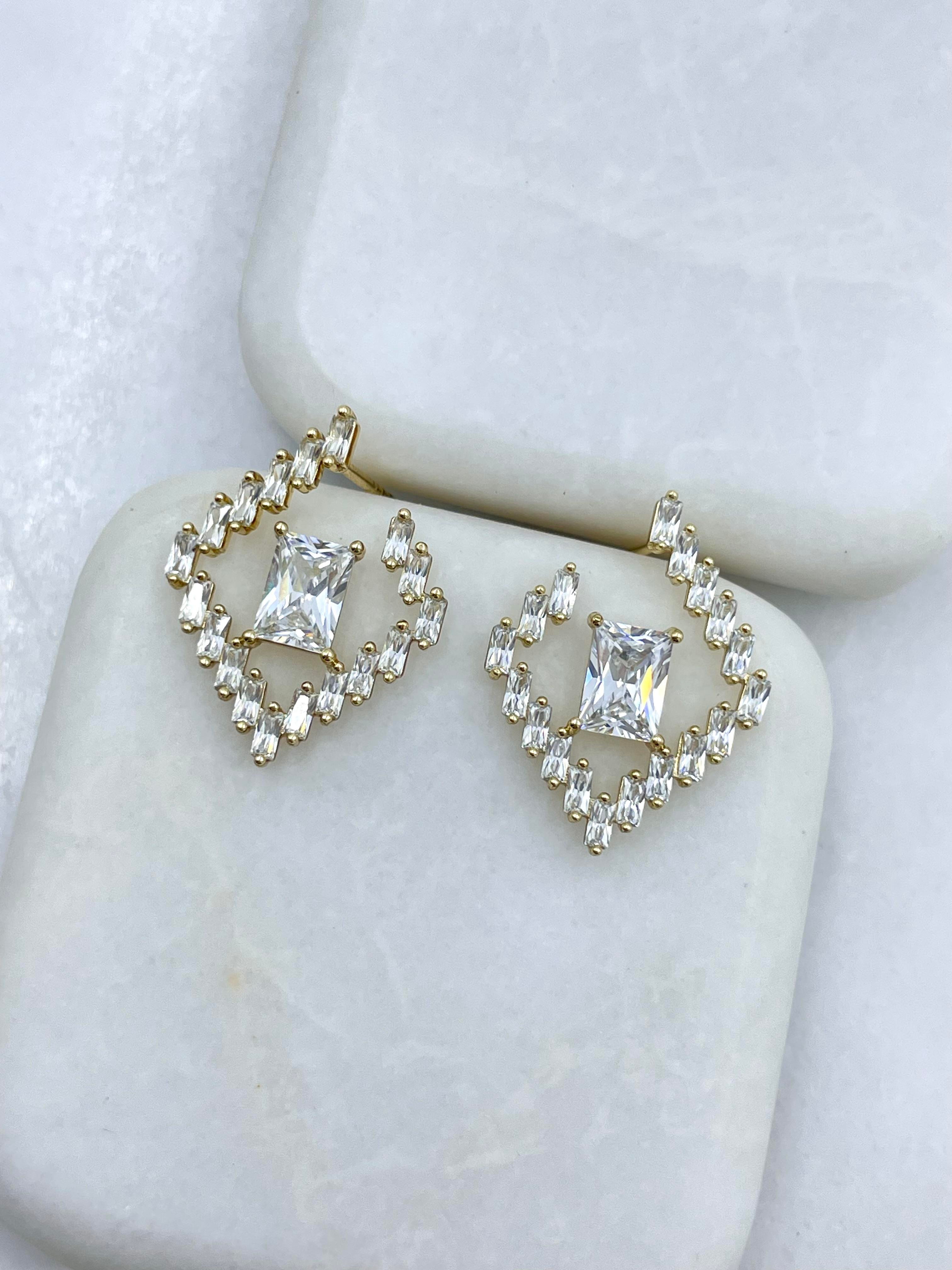 Özel Seri Baget Taşlı Tasarım Küpe Gold