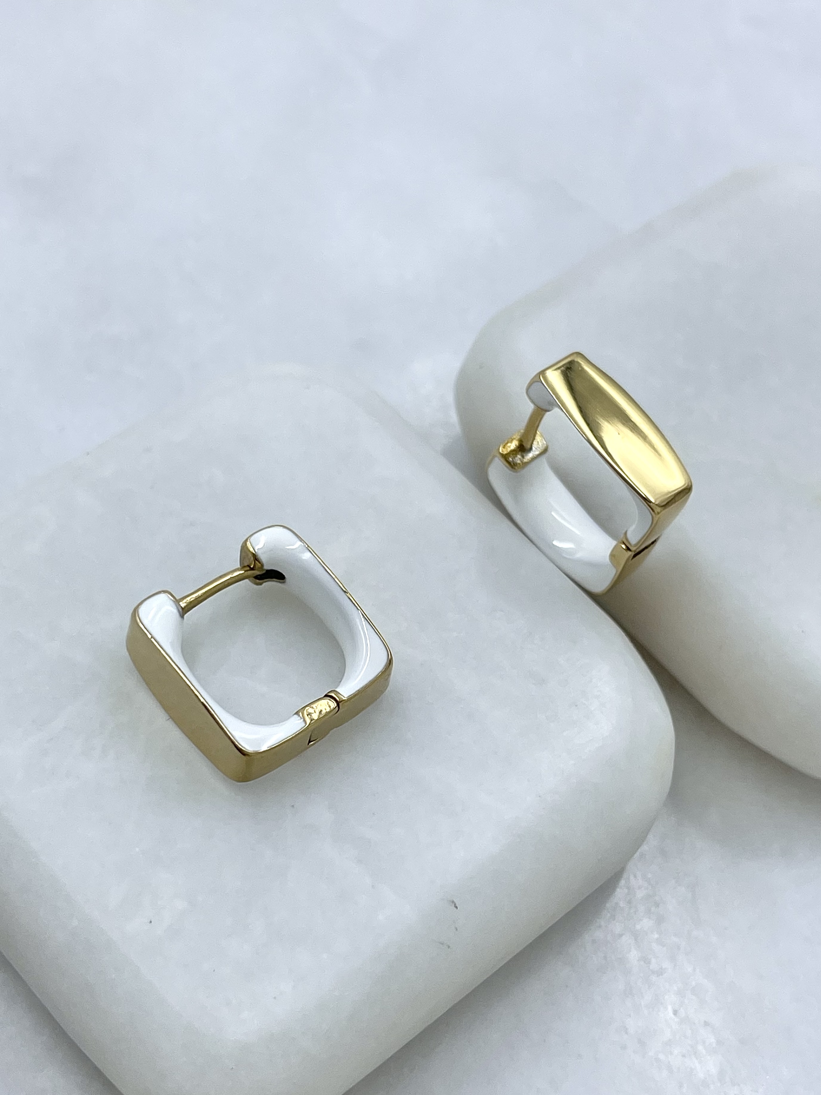 Özel Seri Beyaz Mineli Kare Küpe Gold (21918)