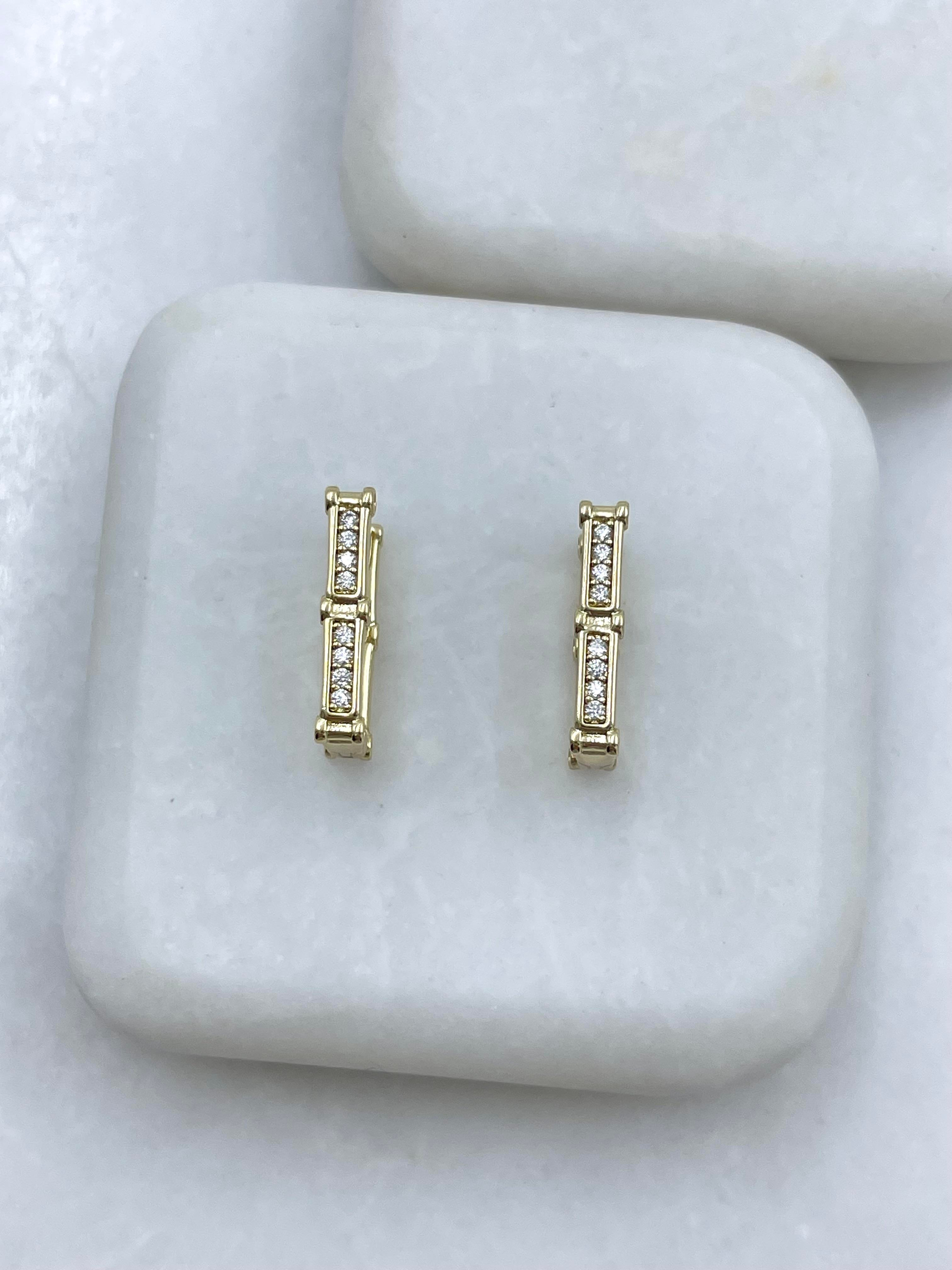 Özel Seri Gömme Taşlı Tasarım U Küpe Gold (21719)