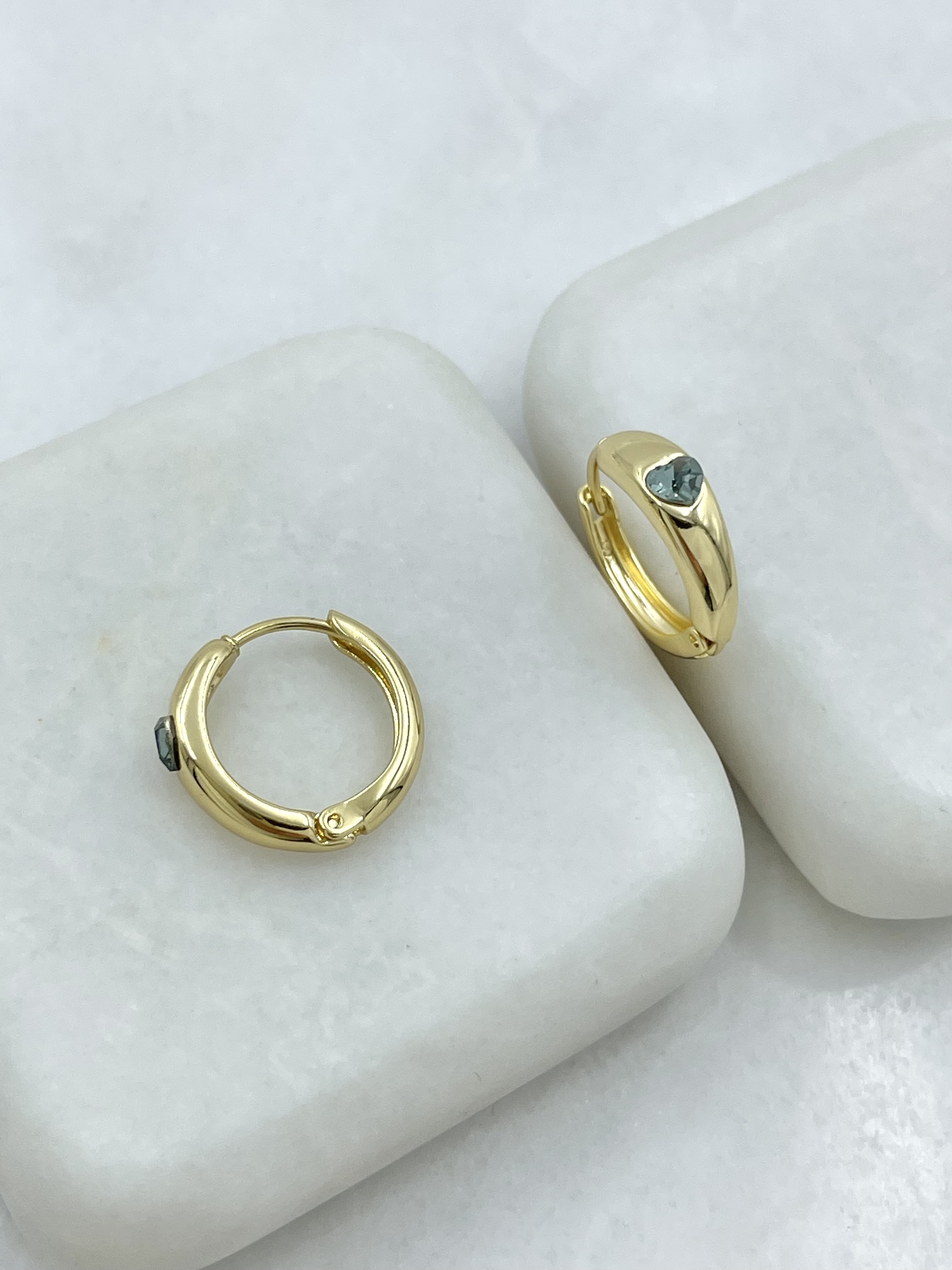 Özel Seri Swarovski Kalpli Basic Halka Küpe Gold