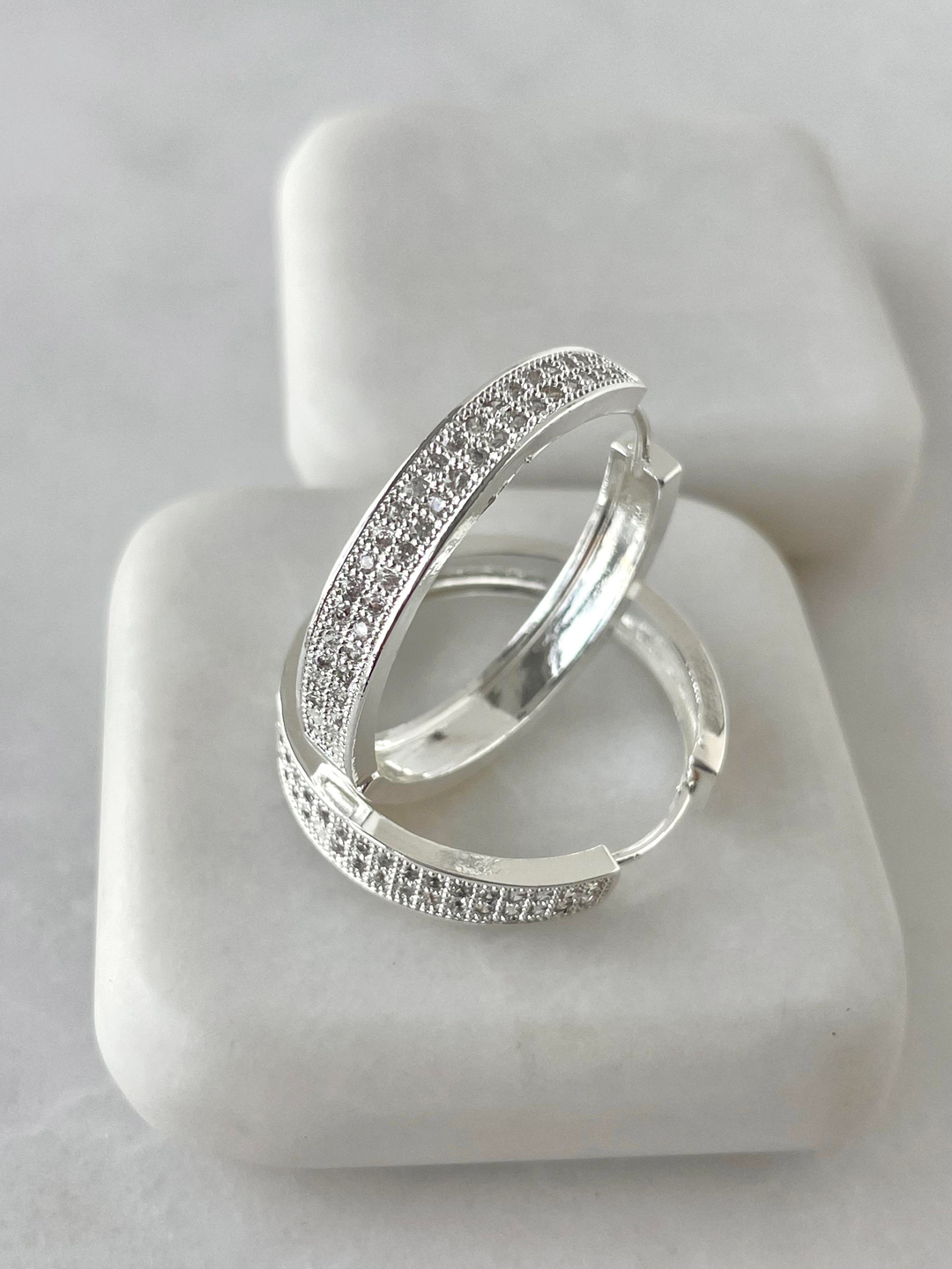 Altın Kaplama Çift Sıralı Taşlı Halka Küpe Gümüş (13480)