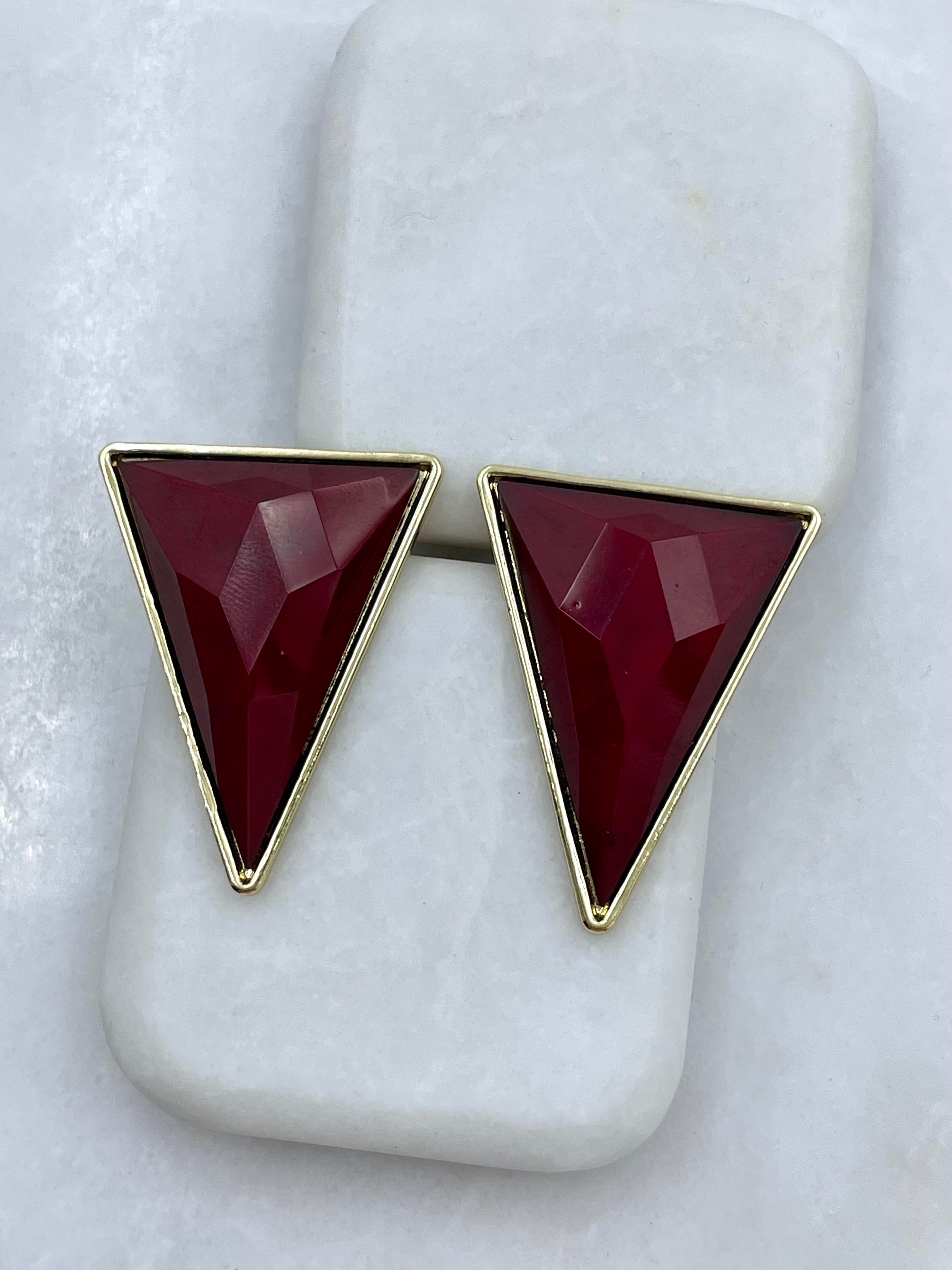 Altın Kaplama Üçgen Vintage Küpe Bordo