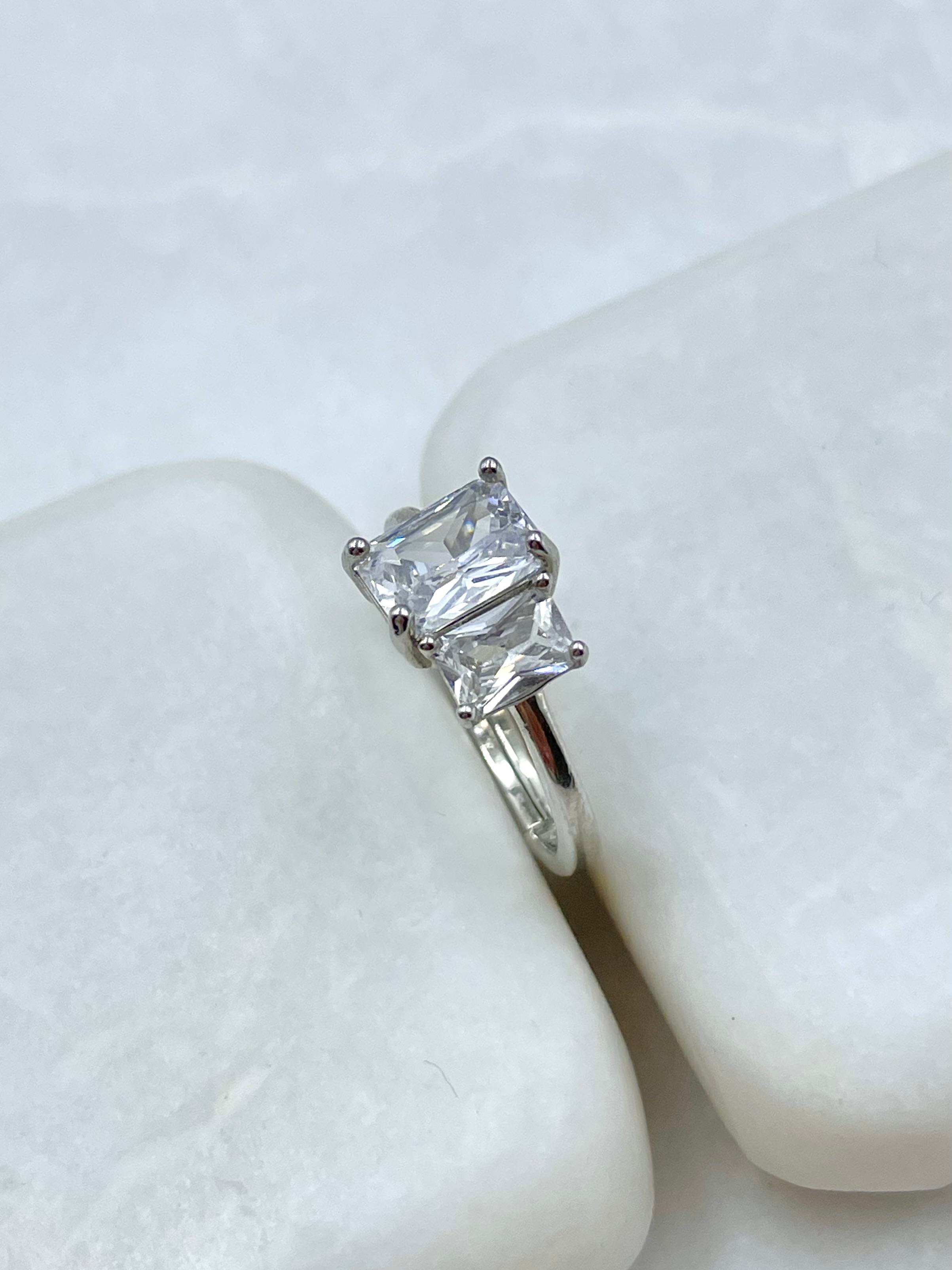 Altın Kaplama Büyük Küçük Kristal Taşlı Yüzük Gümüş