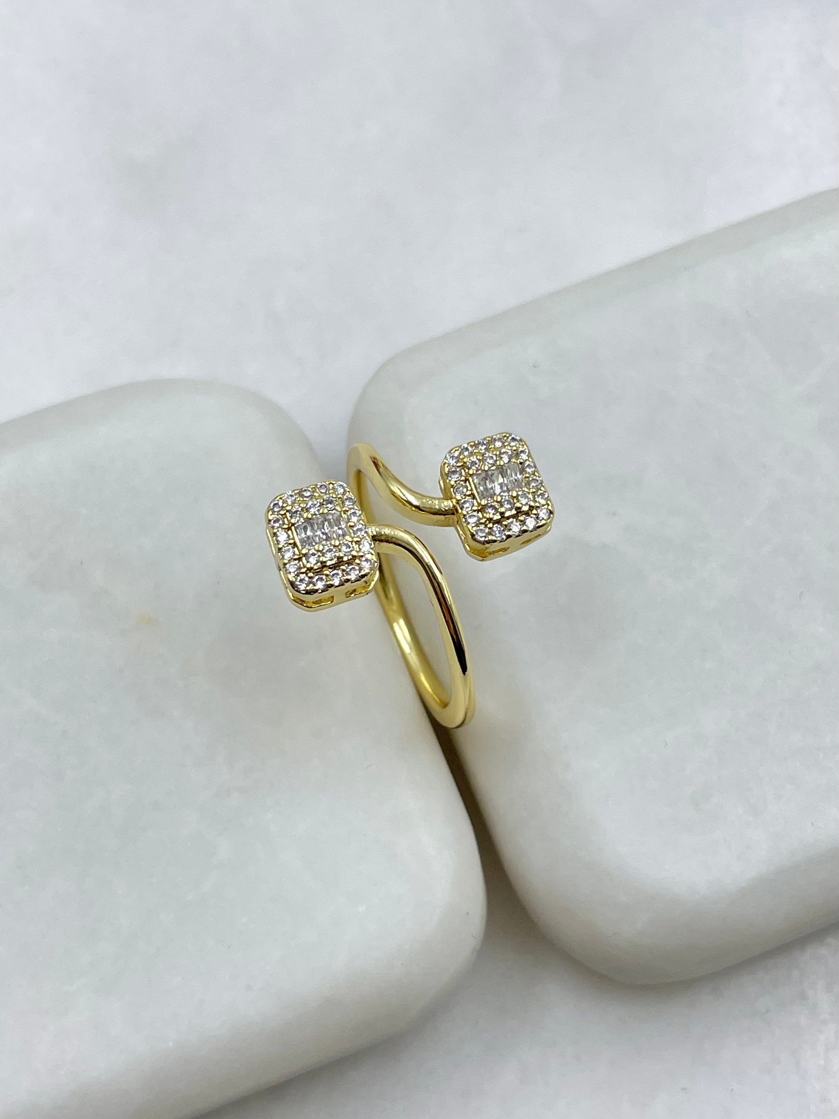 Altın Kaplama Baget ve Gömme Taşlı Birleşim Dikdörtgen Yüzük Gold