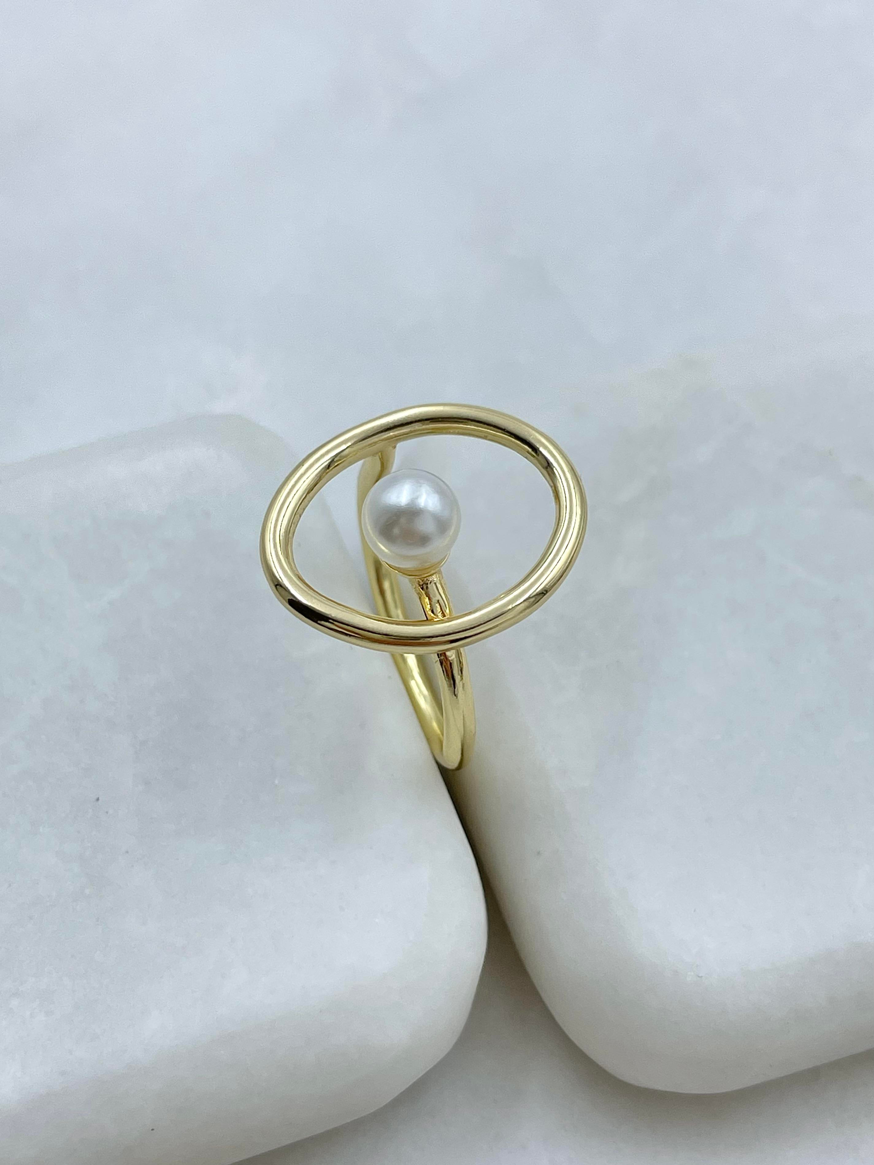 Altın Kaplama Daire İnci Yüzük Gold