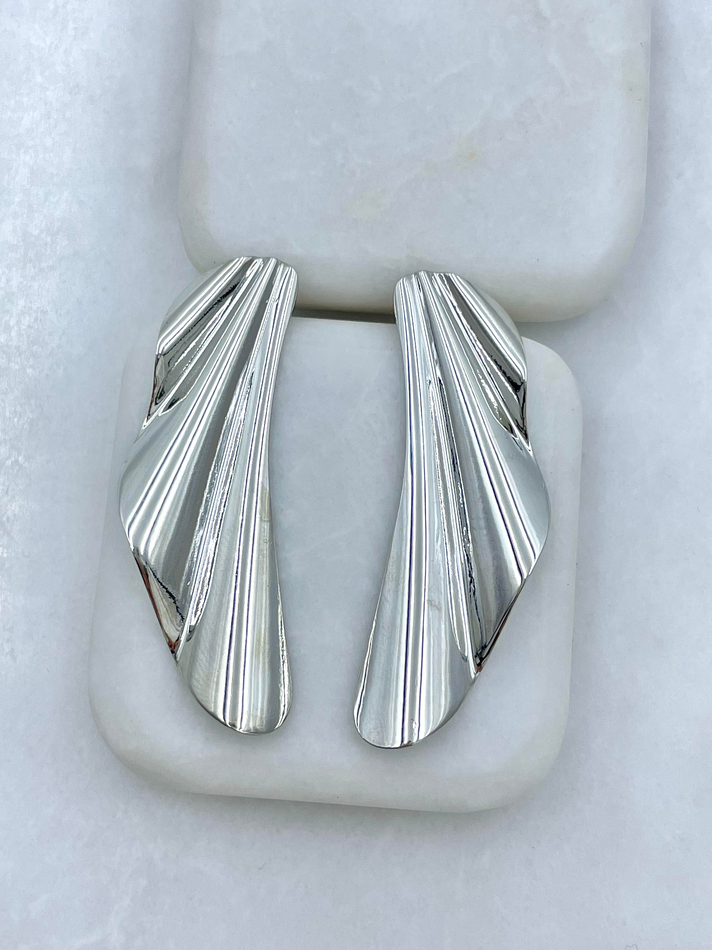 Altın Kaplama Dalga Plaka Küpe Gümüş
