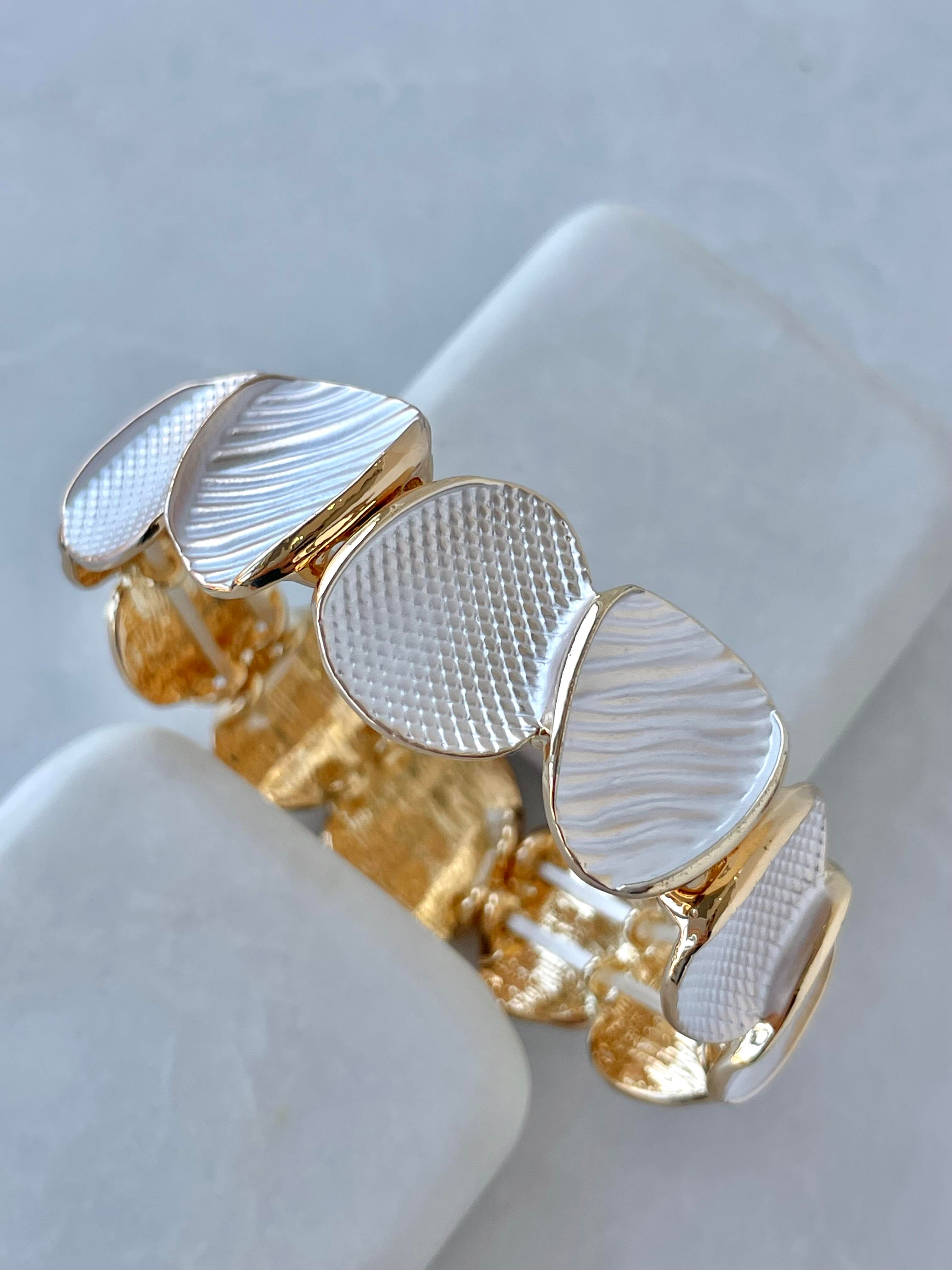 Altın Kaplama Desenli Oval Lastikli Bileklik Kırık Beyaz