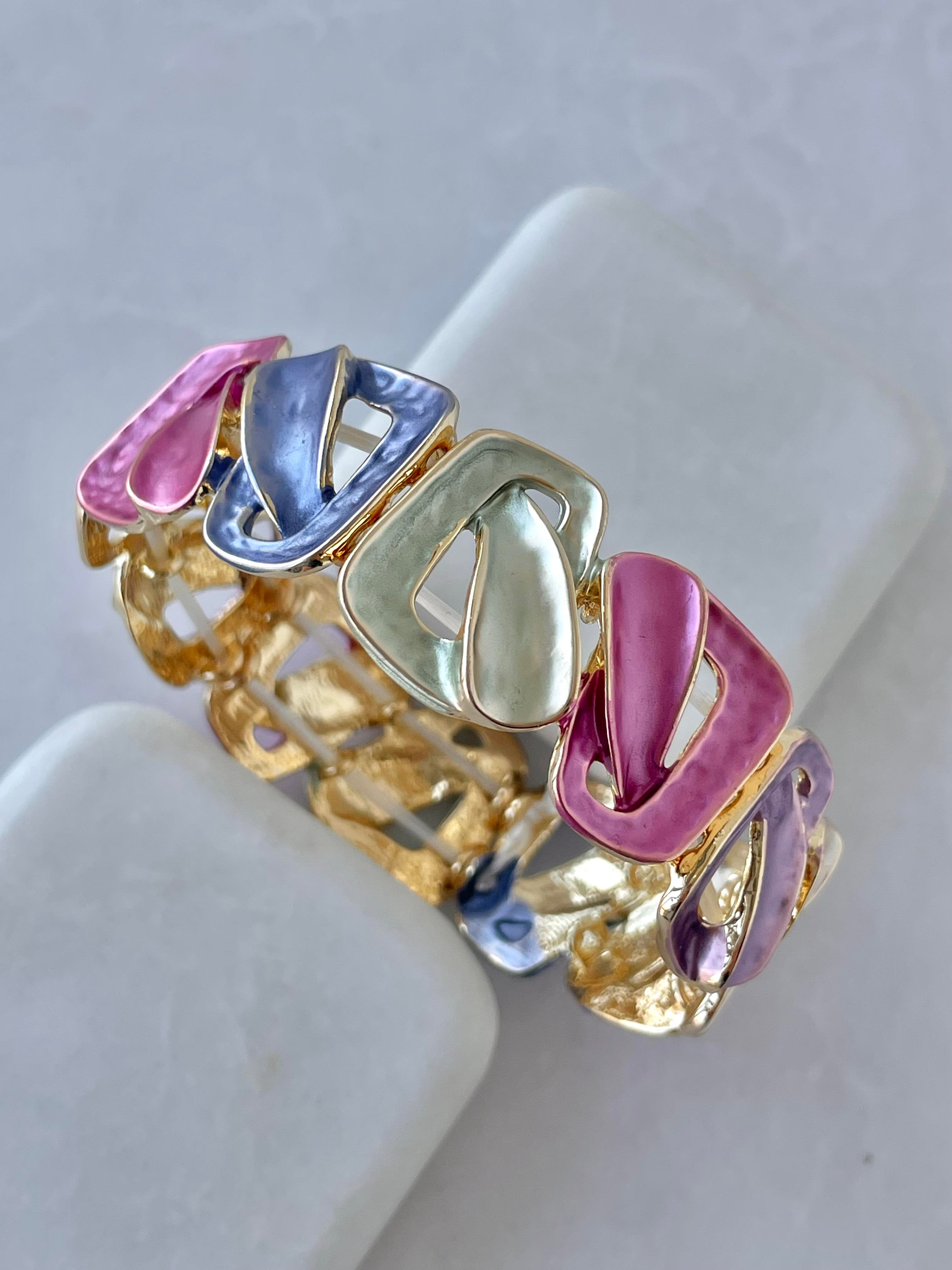 Altın Kaplama Dikdörtgen Düğüm Lastikli Bileklik Renkli