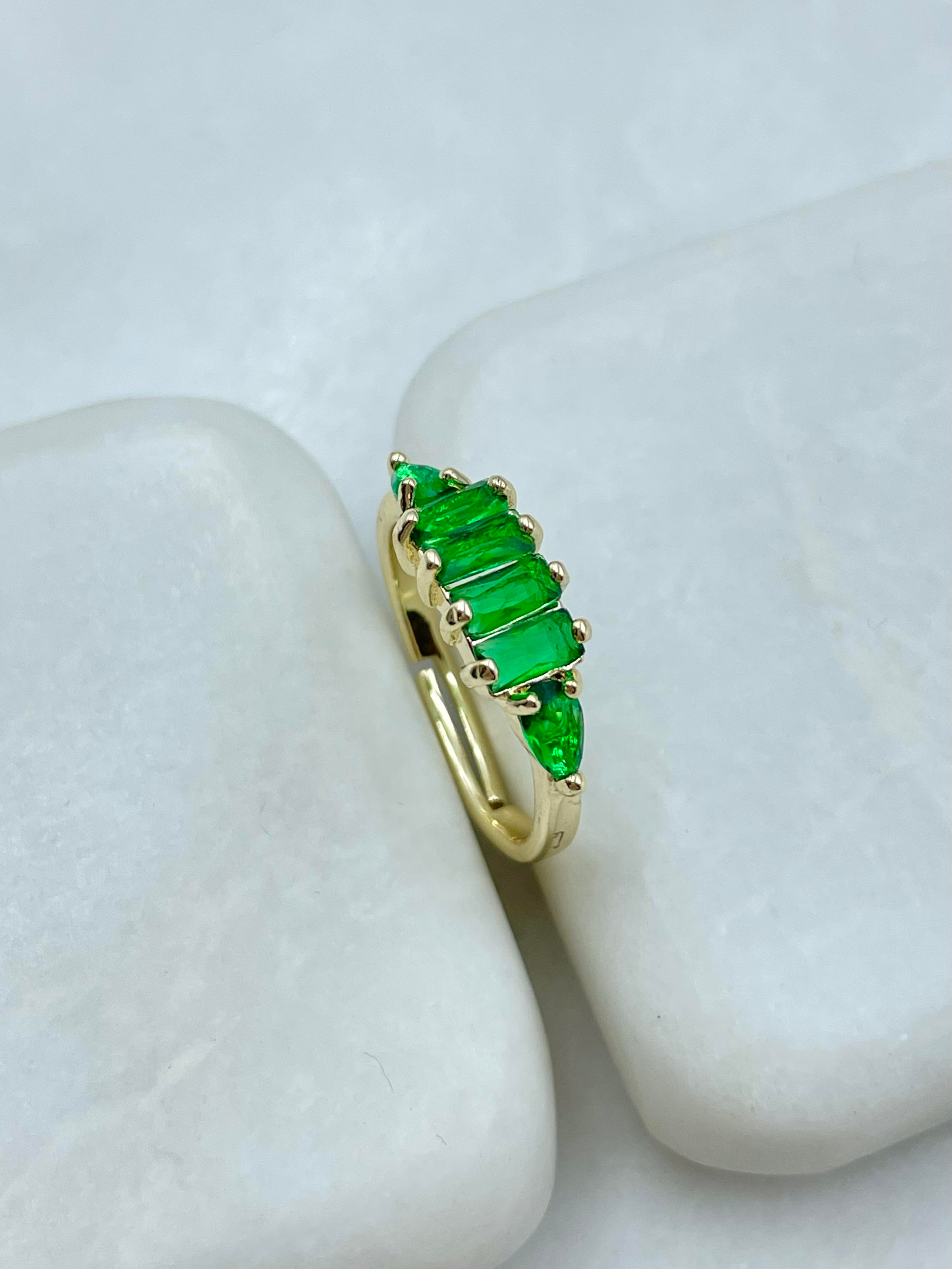 Altın Kaplama Dizi Baget Taşlı Yüzük Yeşil (20447)