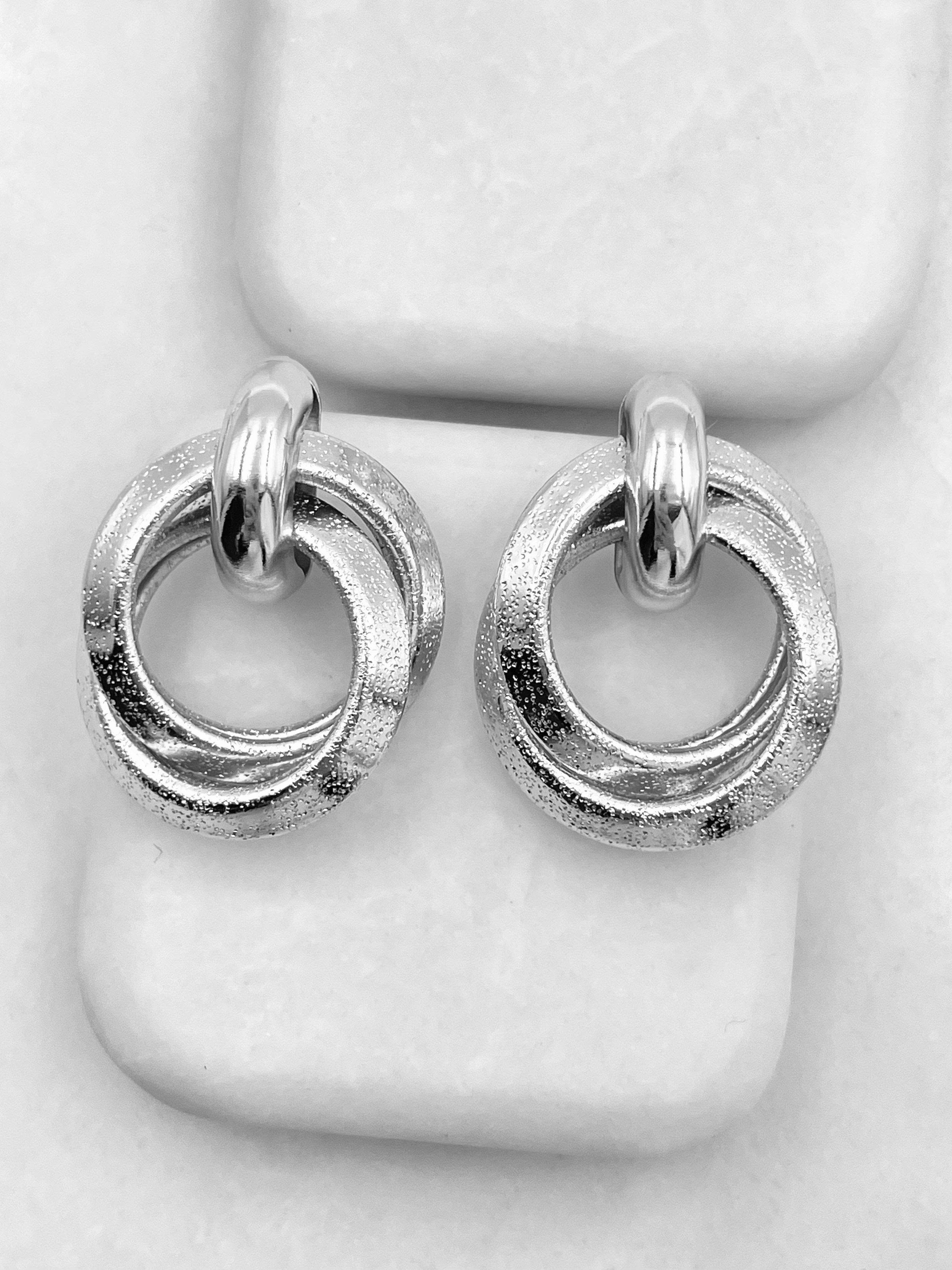 Altın Kaplama Ezme İkili Halka Vintage Küpe Gümüş