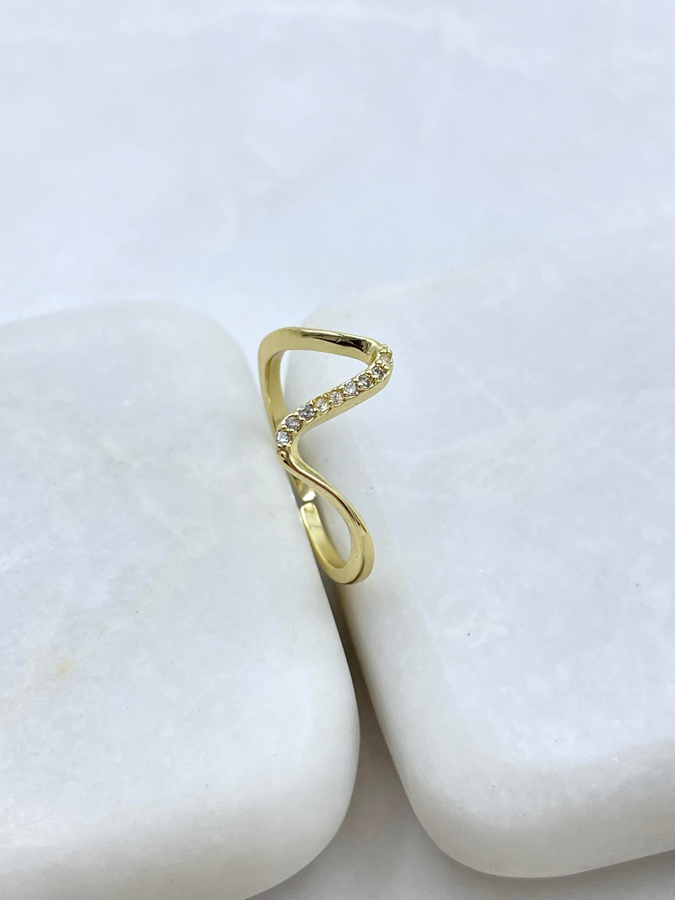 Altın Kaplama Gömme Taşlı Dalga Model Yüzük Gold