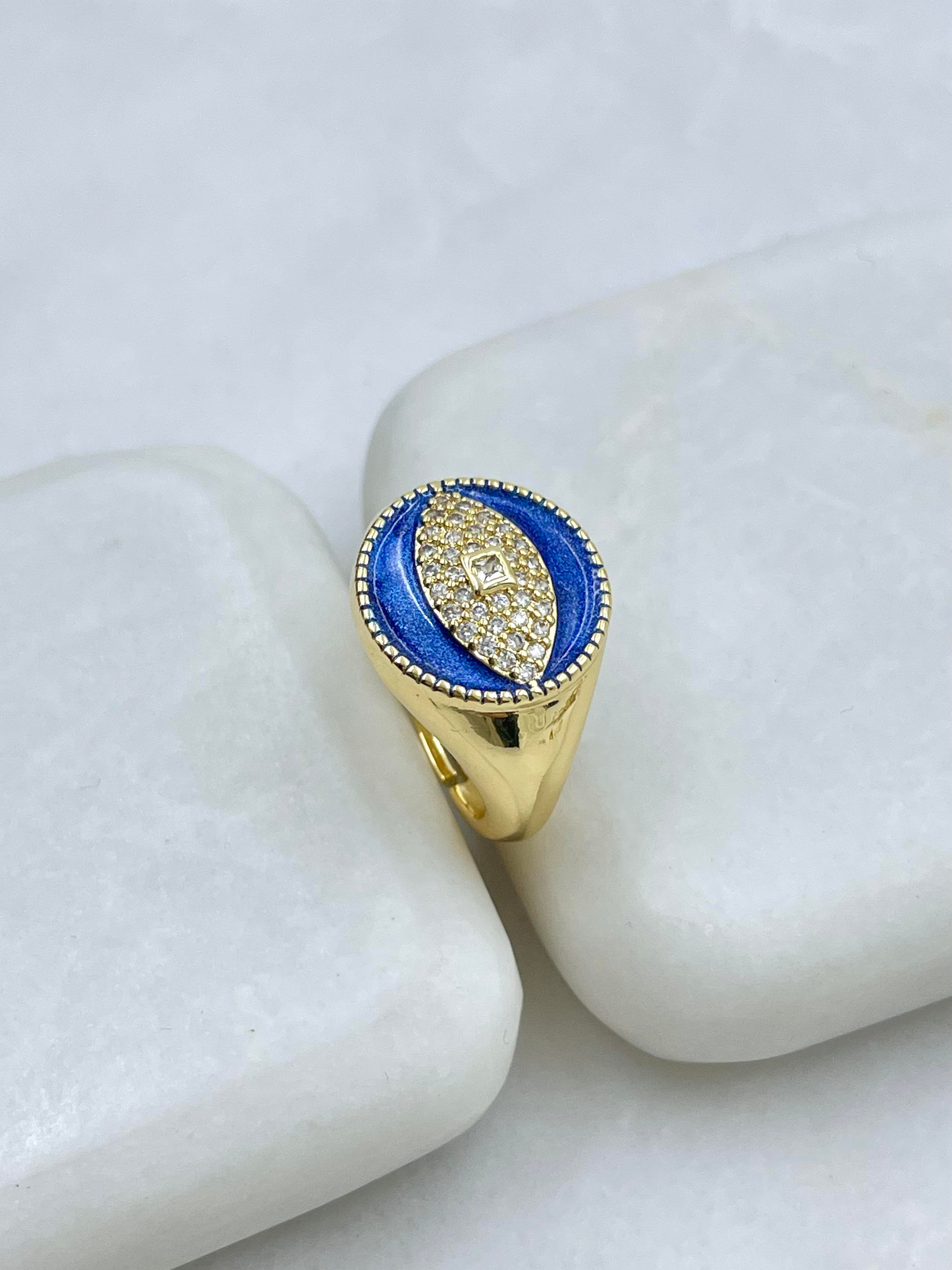 Altın Kaplama Gömme Taşlı Göz Model Serçe Parmak Yüzüğü Lacivert Gold