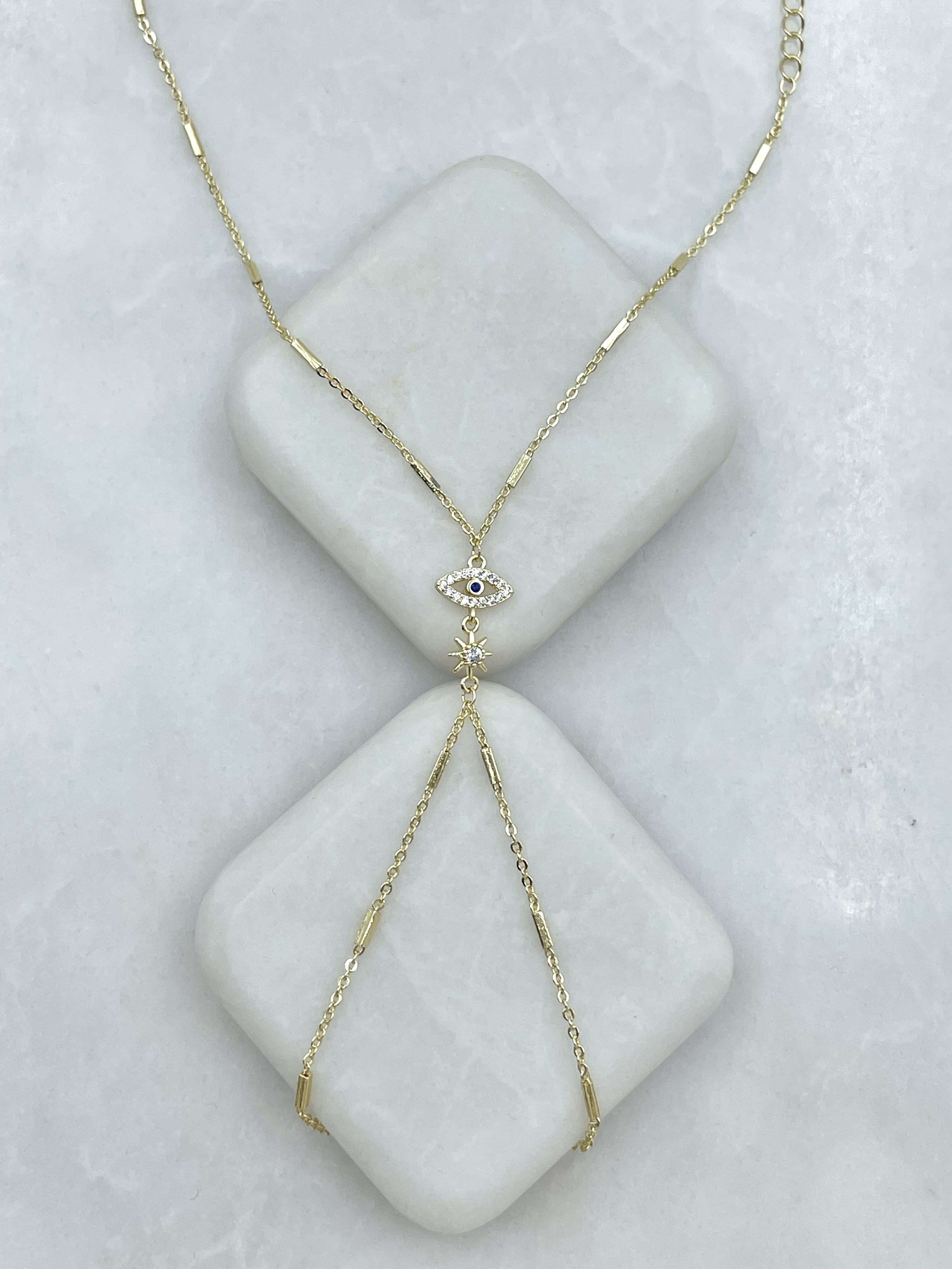 Altın Kaplama Gömme Taşlı Güneş ve Göz Model Şahmeran Gold