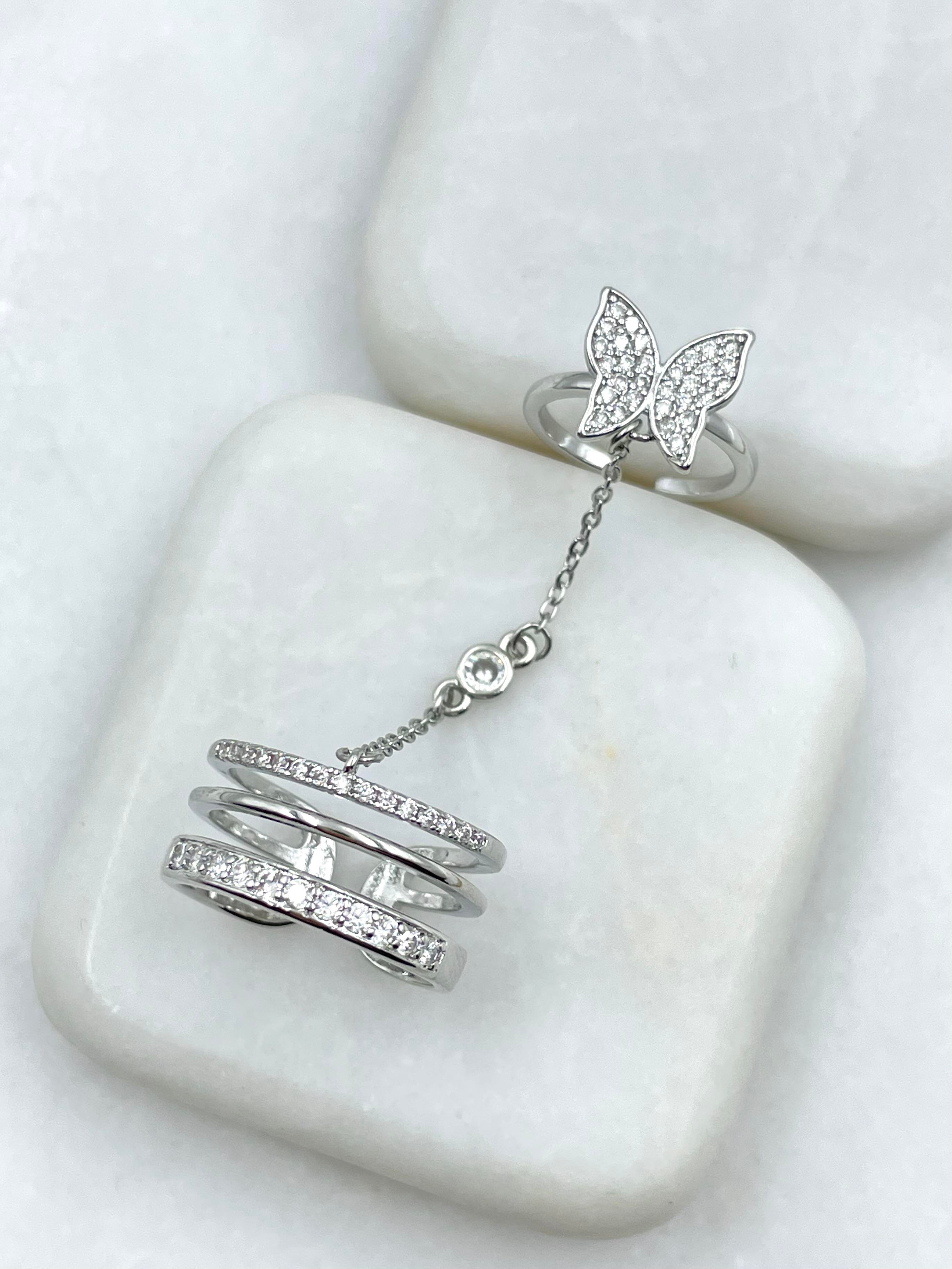 Altın Kaplama Gömme Taşlı Kelebek Model Eklemli Yüzük Gümüş (20405)