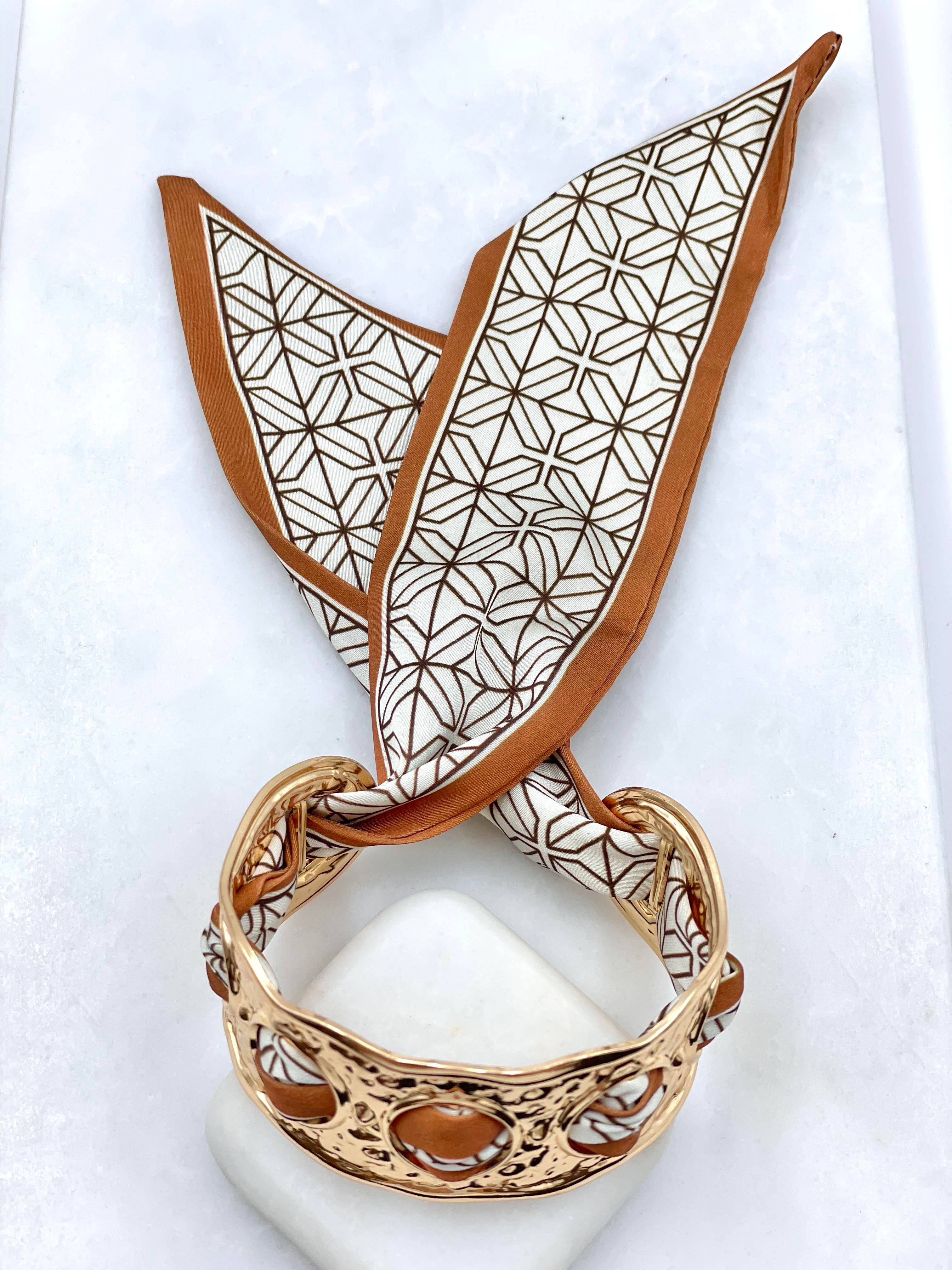 Altın Kaplama Geometrik Desenli Fularlı Kelepçe Gold