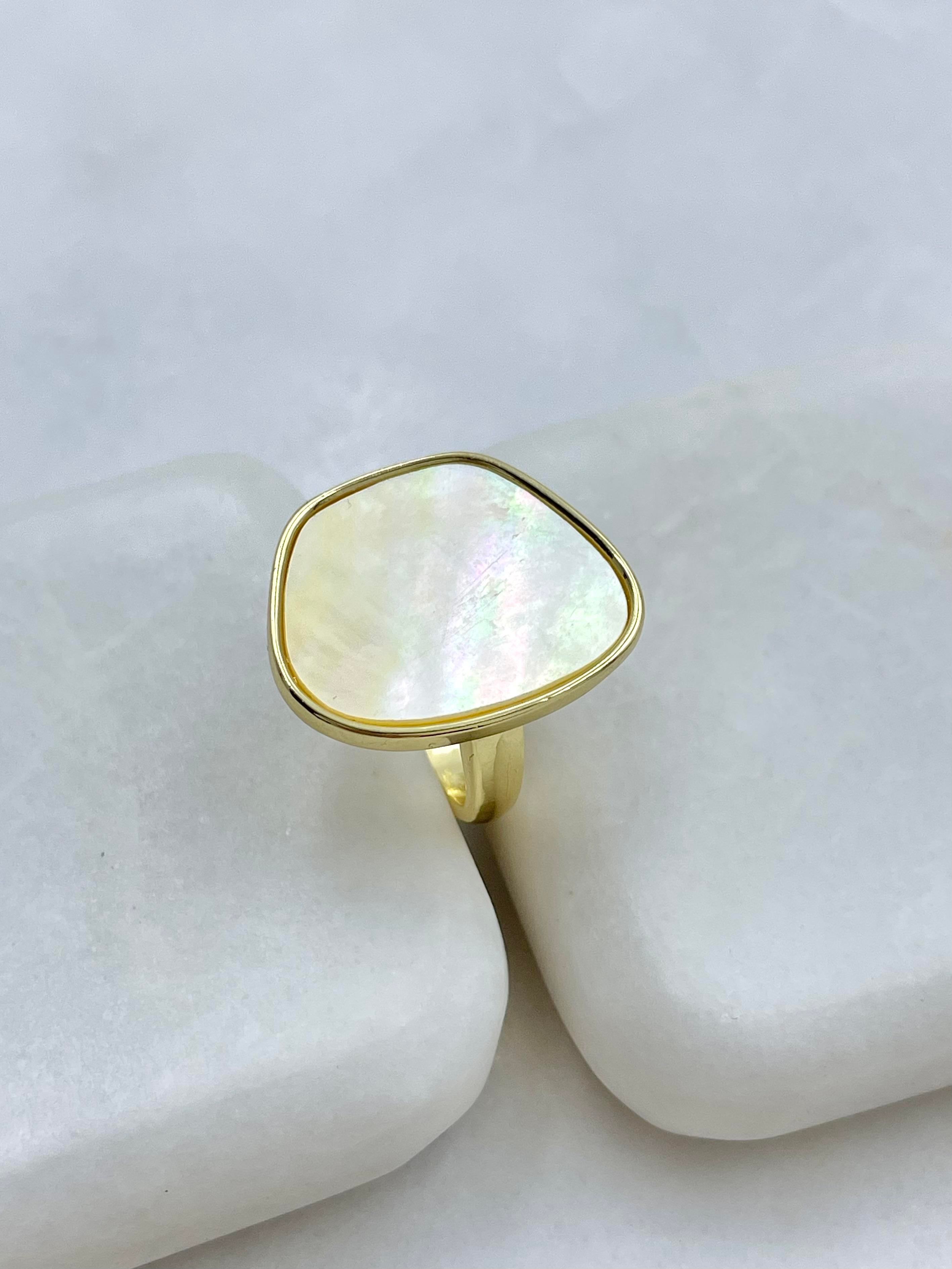 Altın Kaplama Gerçek Sedef Asimetrik Yüzük Gold (21516)