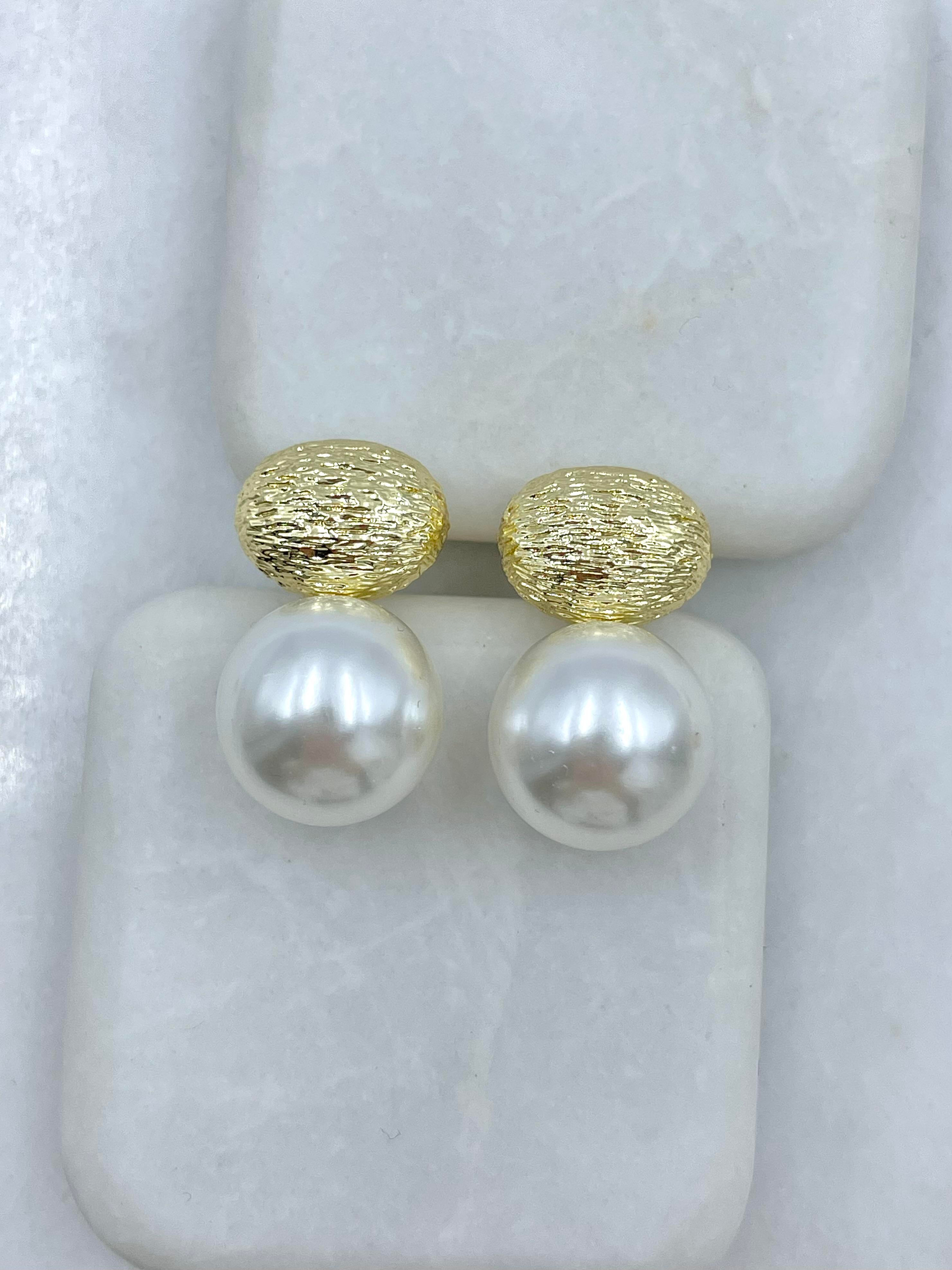 Altın Kaplama Gold Detaylı İnci Küpe Gold (21722)