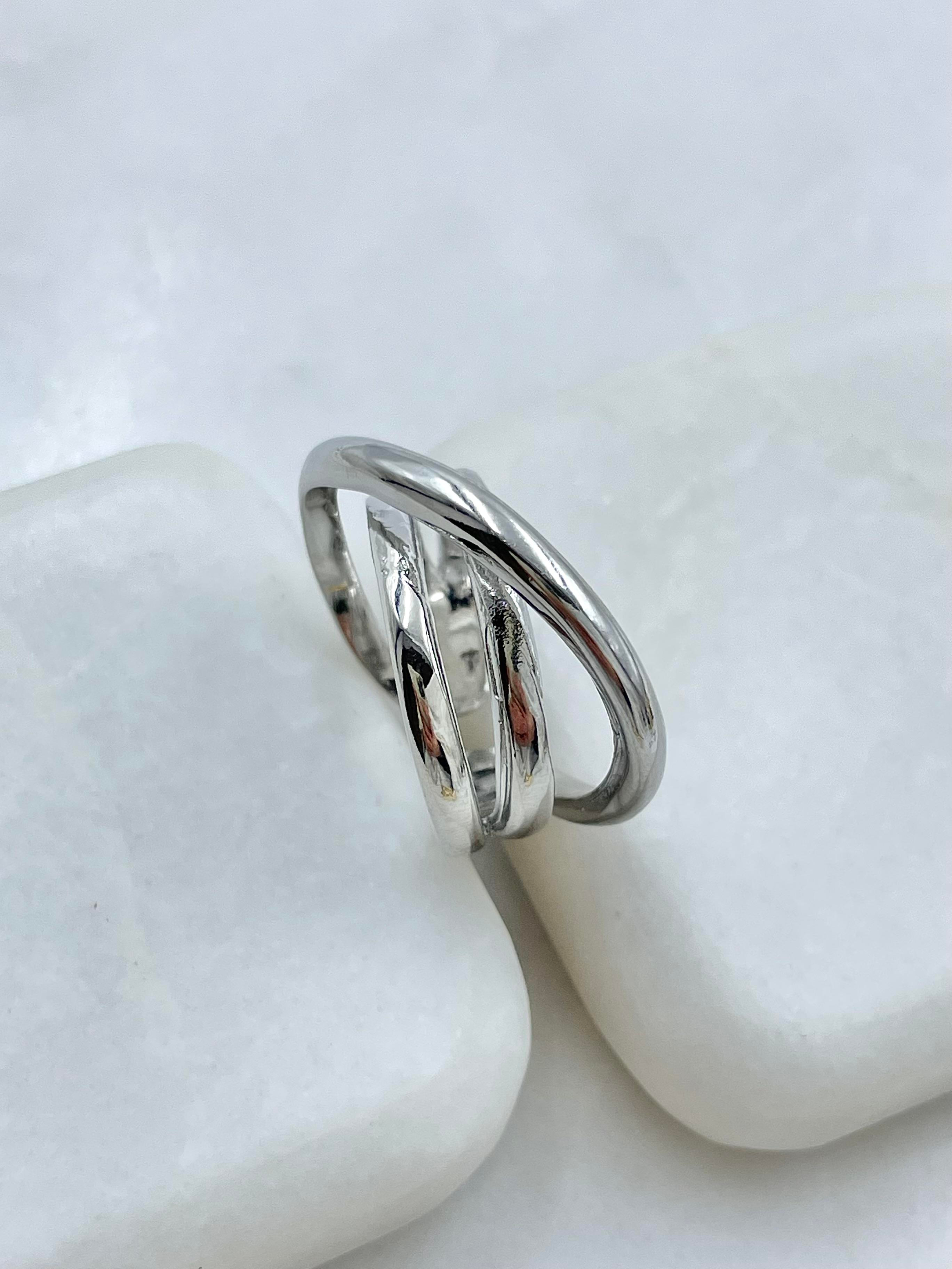 Altın Kaplama Halka Geçmeli Tasarım Yüzük Gümüş