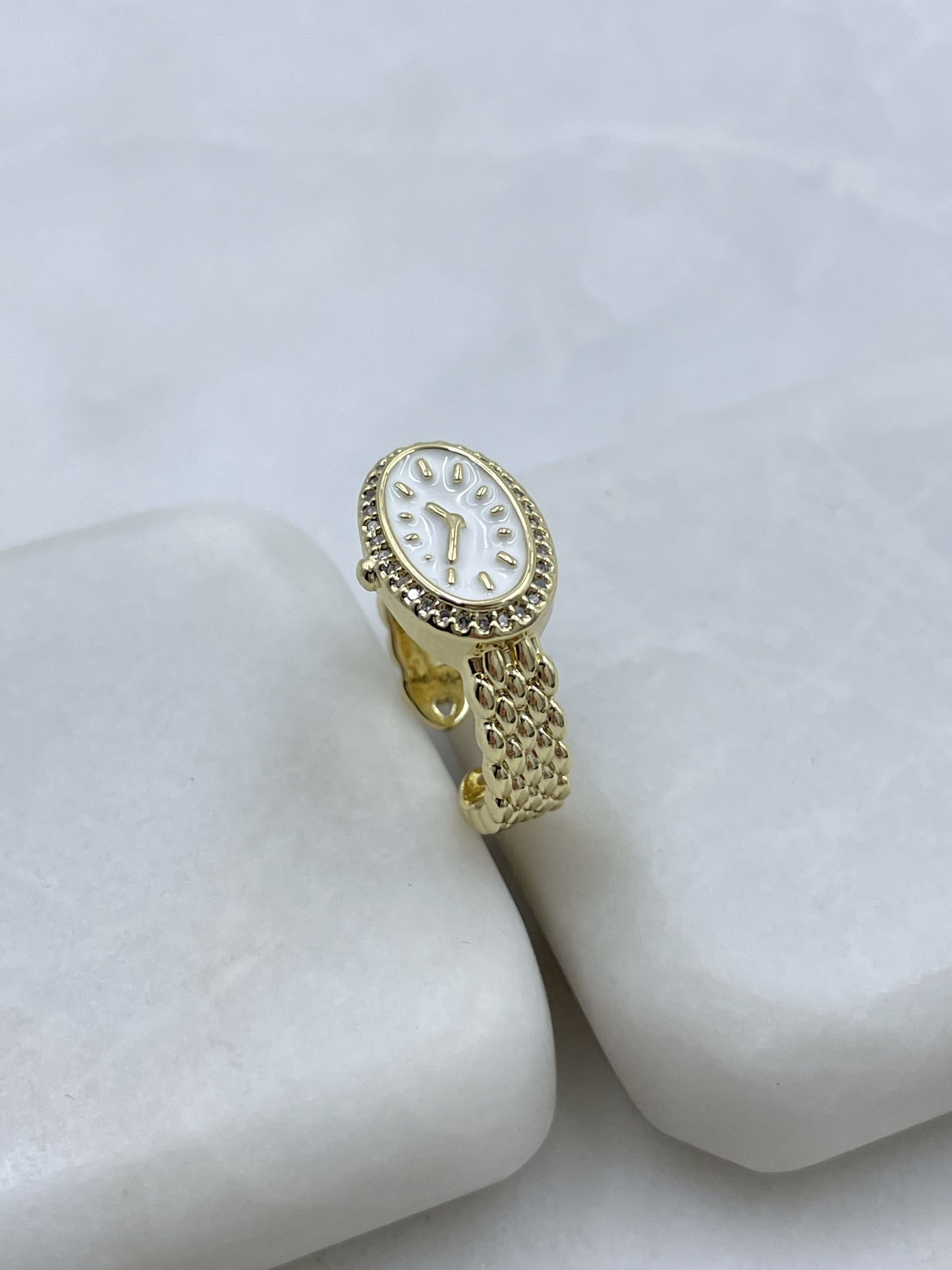 Altın Kaplama Hasır Saat Yüzük Beyaz (22220)