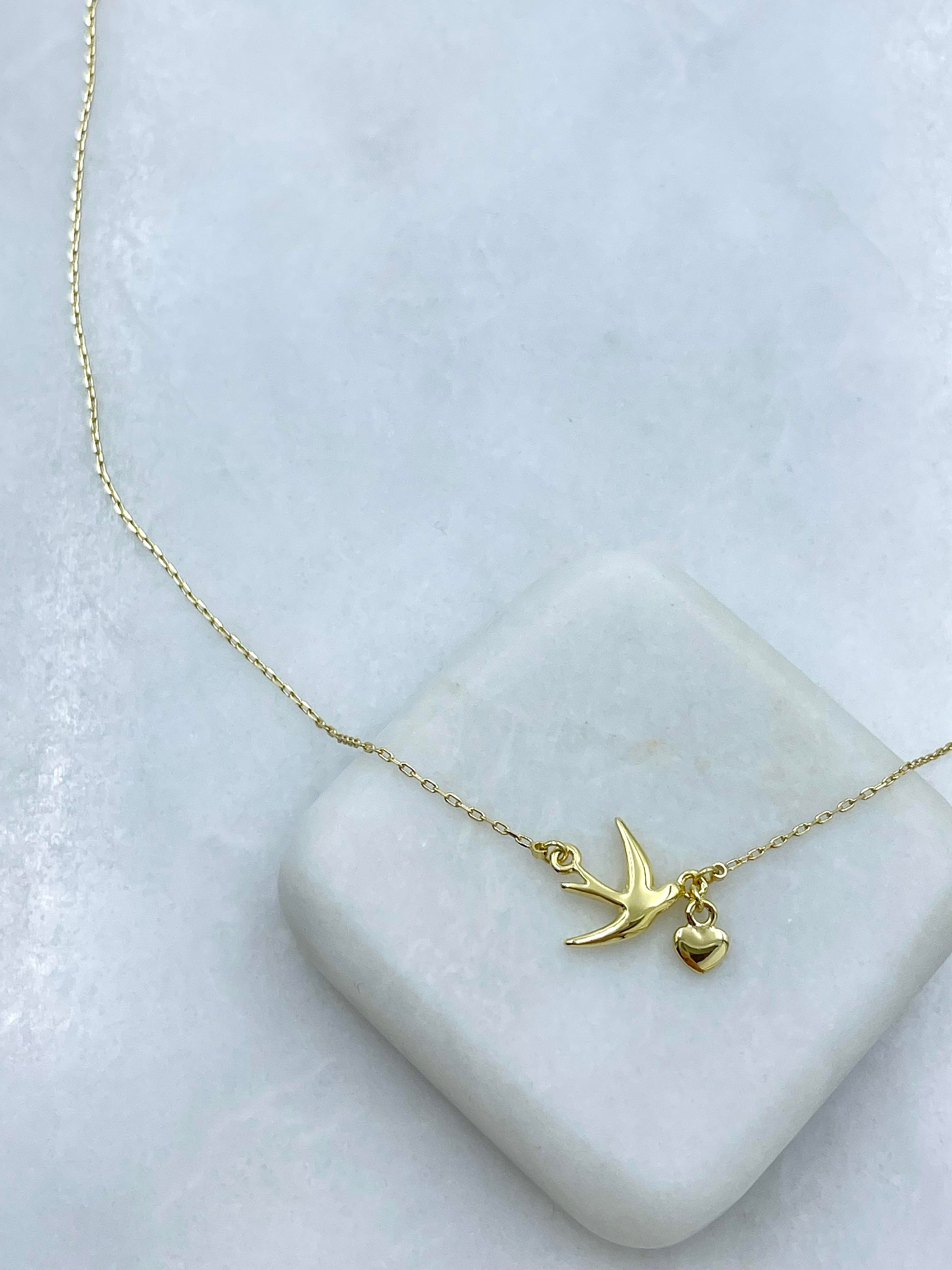 Altın Kaplama Kalp Sallantılı Kuş Model Zincir Kolye Gold (21303)