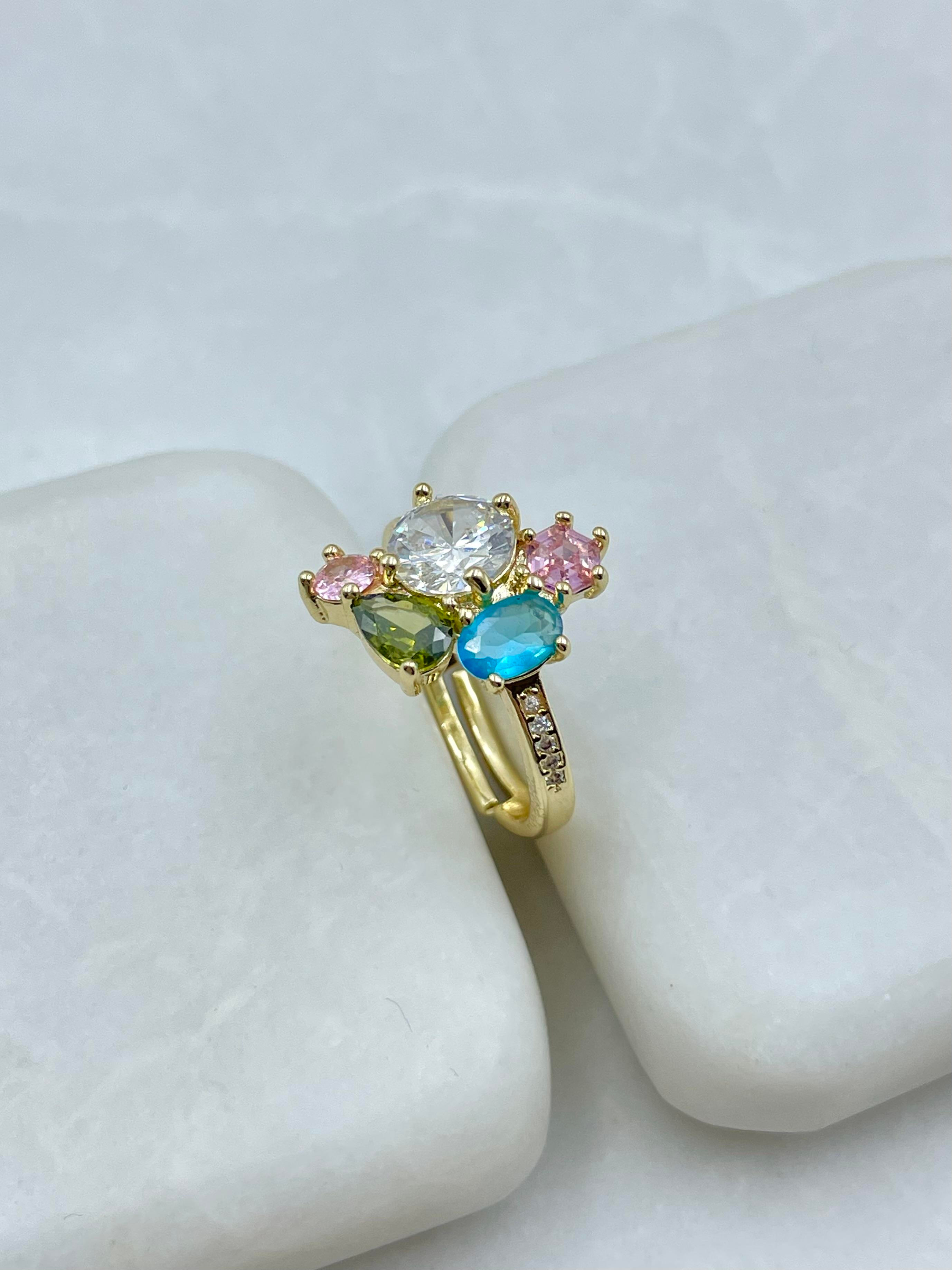 Altın Kaplama Karışık Renkli Kristal Taşlı Yüzük Gold