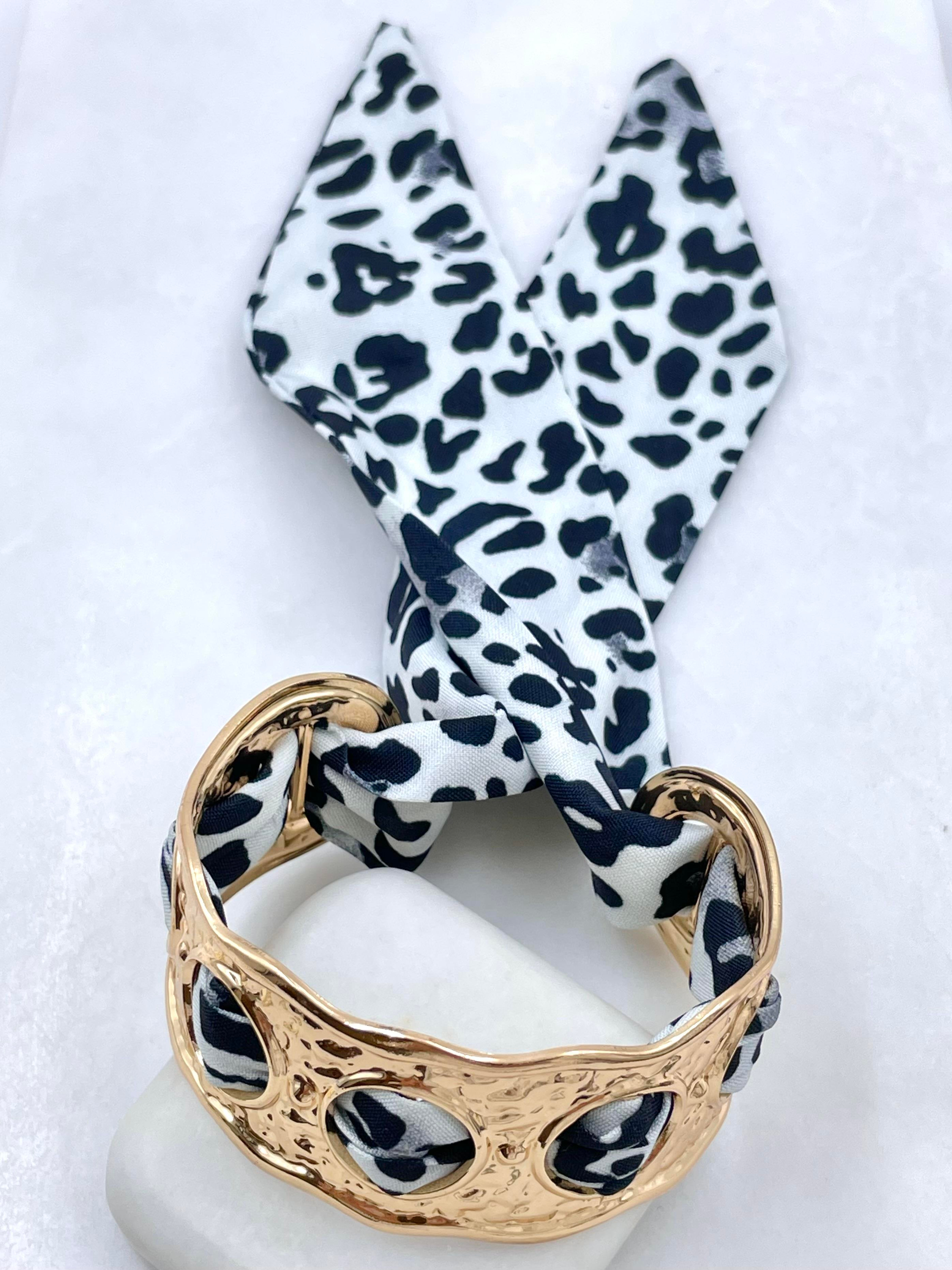 Altın Kaplama Leopar Desenli Fularlı Kelepçe Gold