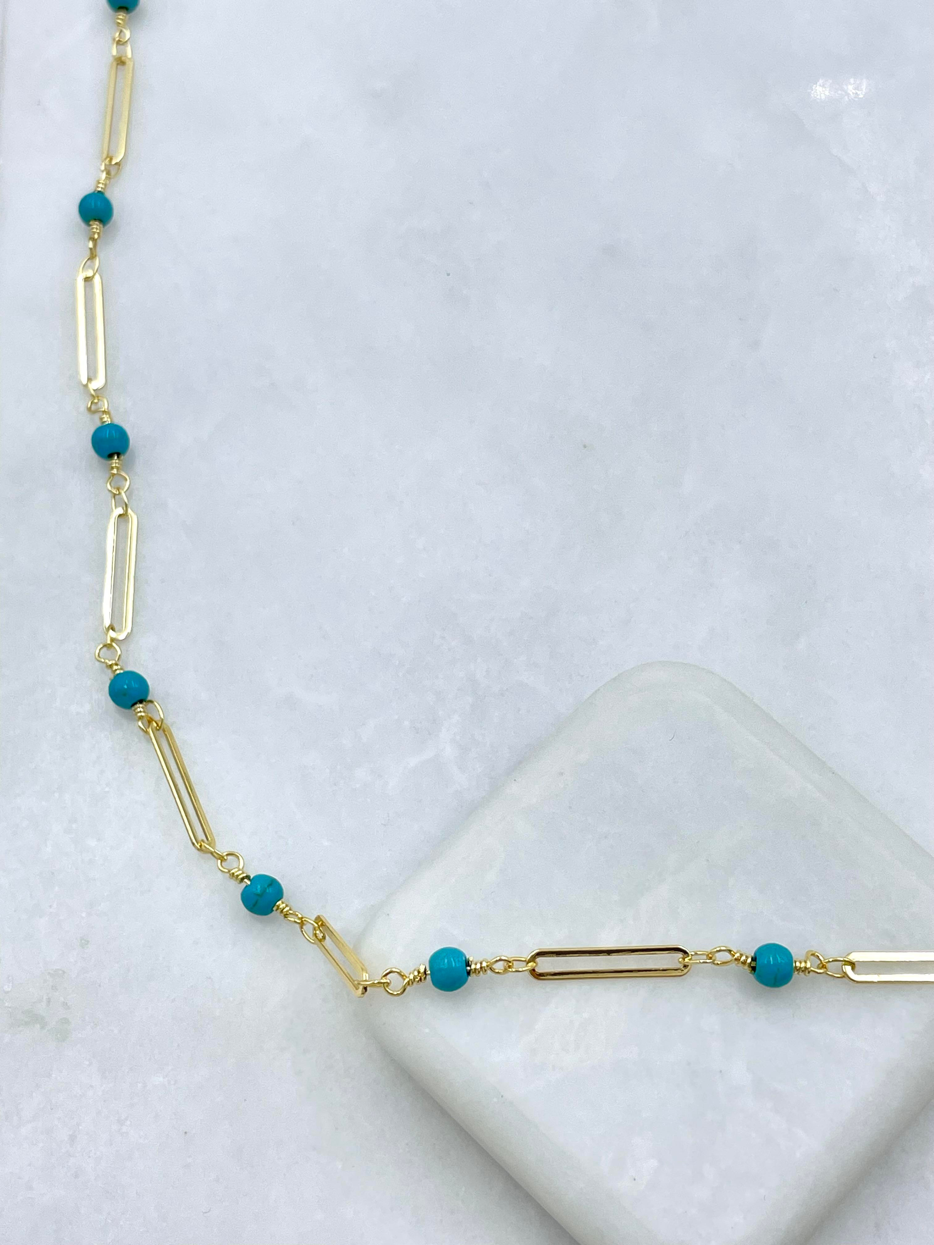Altın Kaplama Mavi Boncuklu Zincir Kolye 90 cm Gold