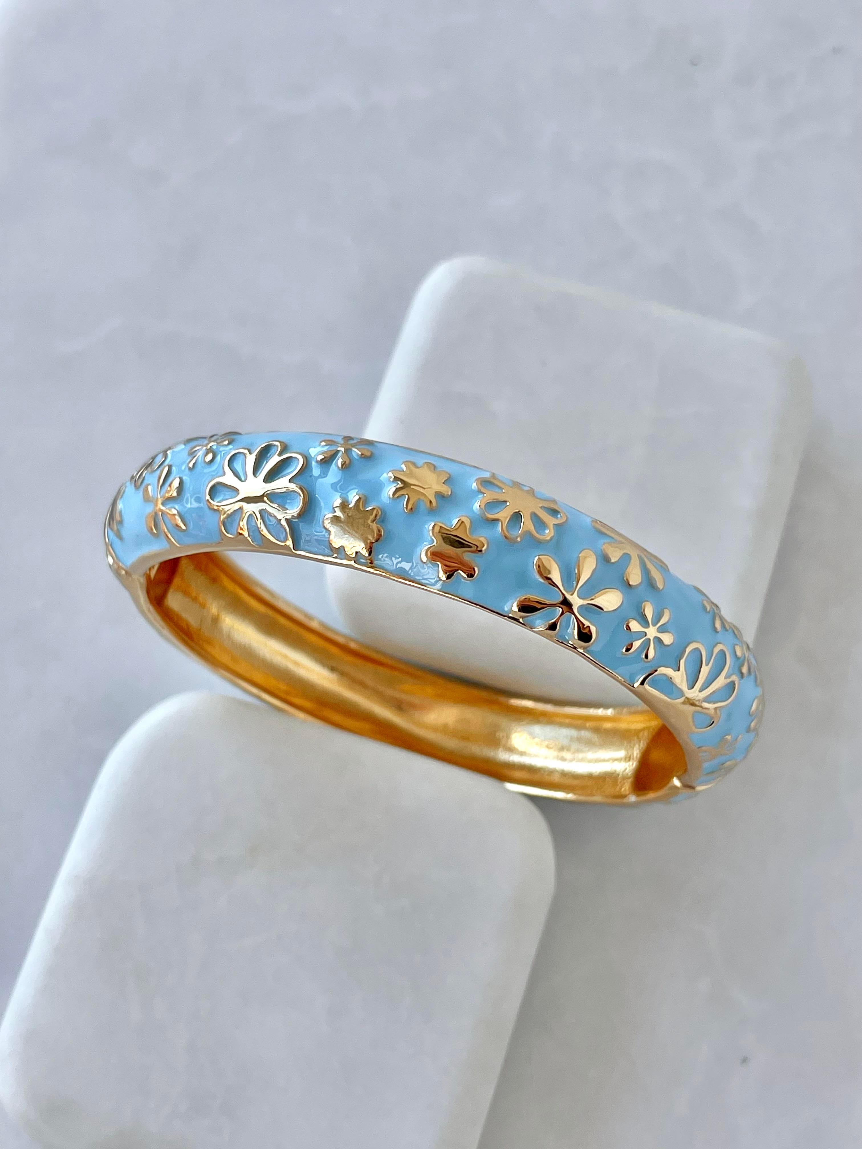 Altın Kaplama Mineli Çiçekli Kelepçe Bileklik Mavi