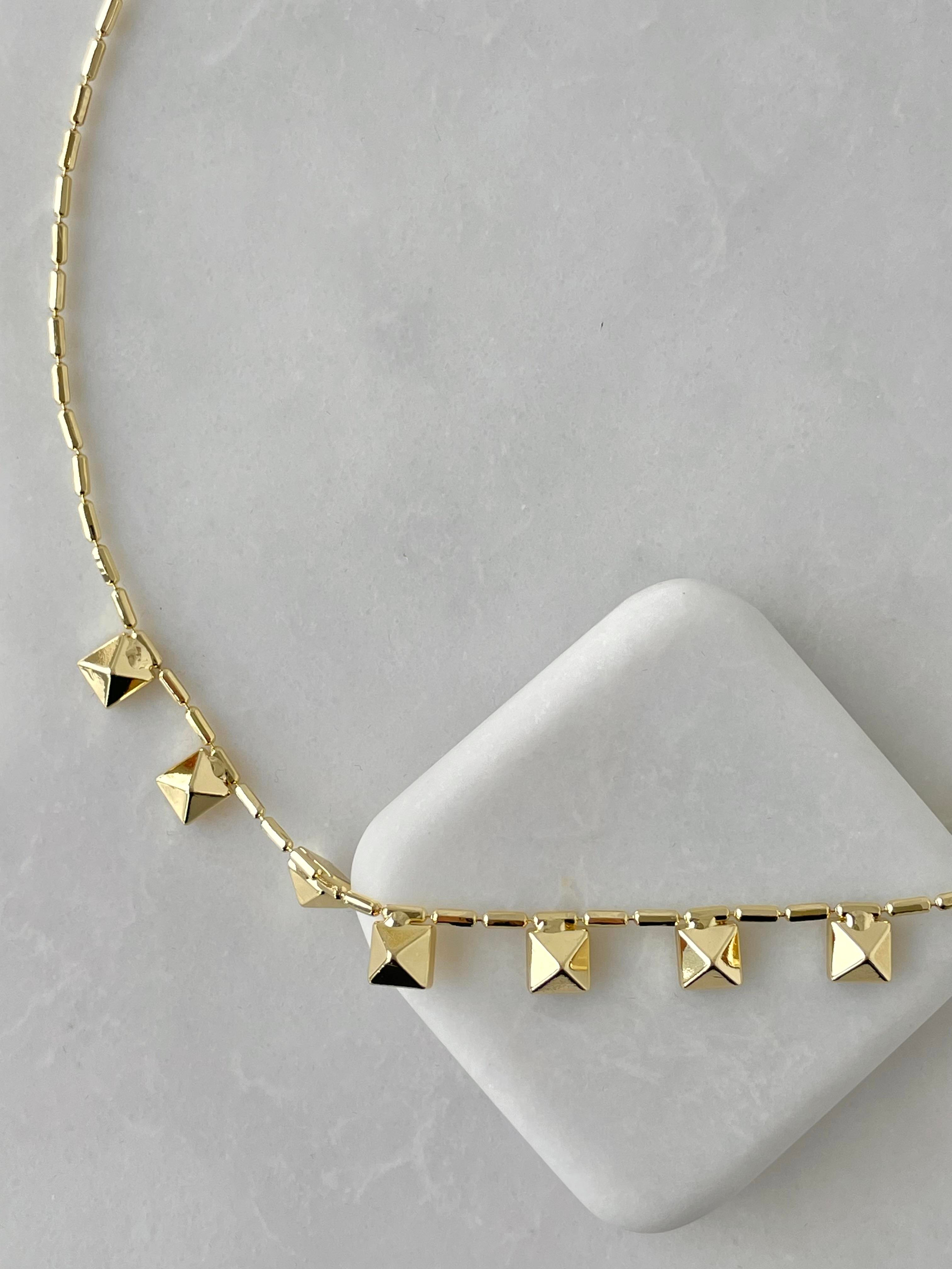 Altın Kaplama Prizma Plaka Kolye Gold