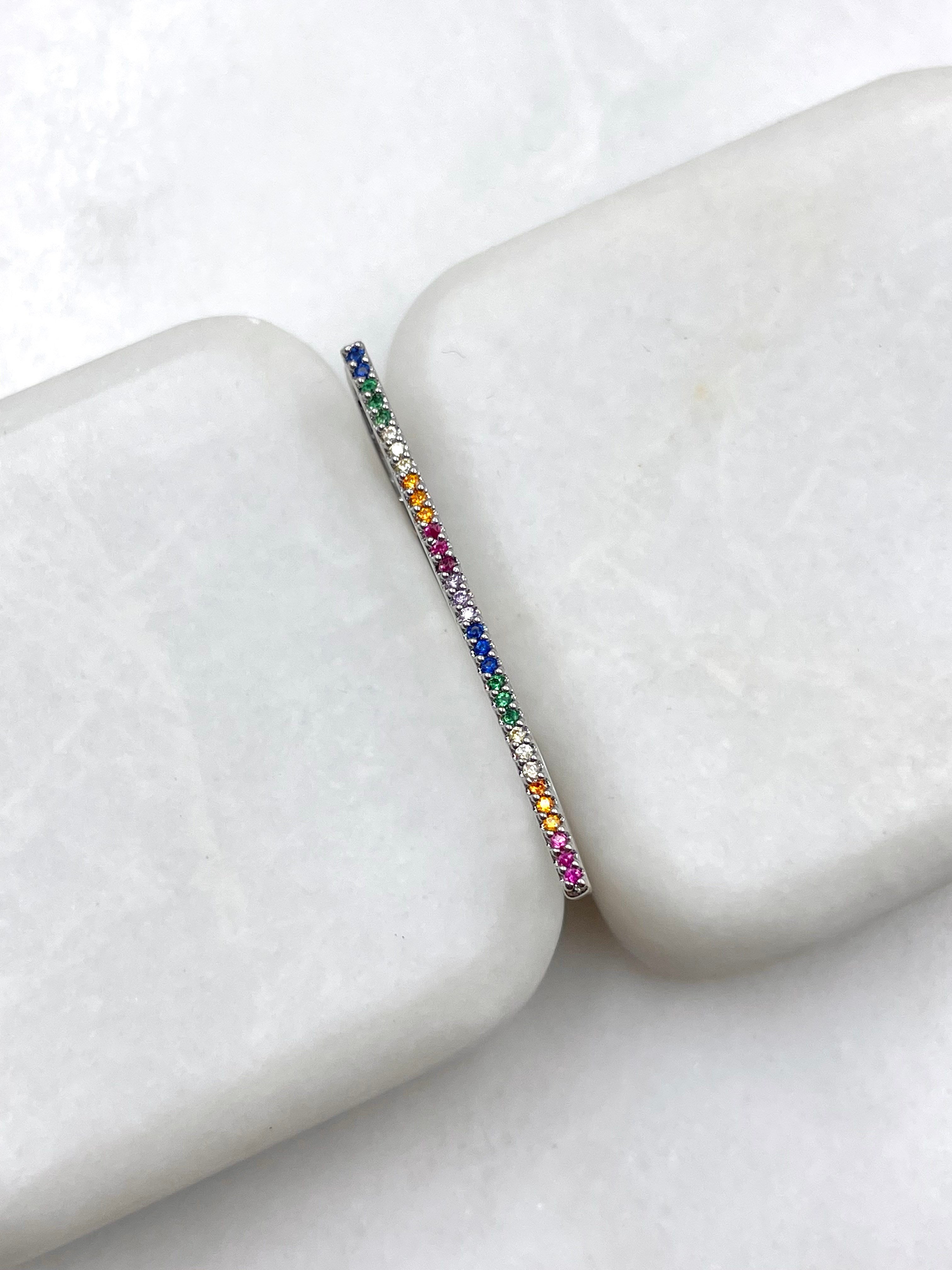 Altın Kaplama Renkli Gömme Taşlı Kulak Üstü Küpe Gümüş (22997)
