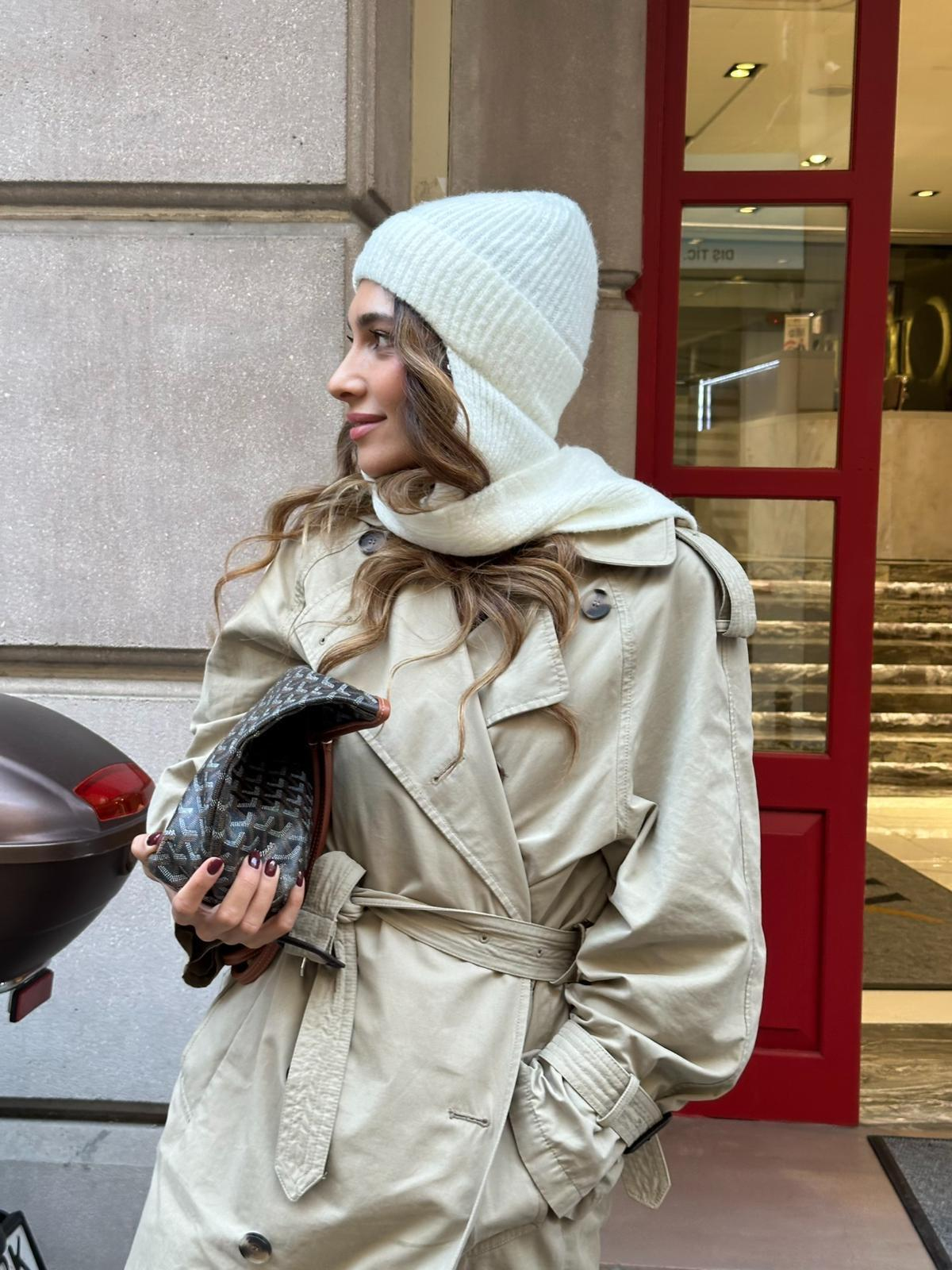 Fitilli Triko Birleşik Atkılı Bere Ekru