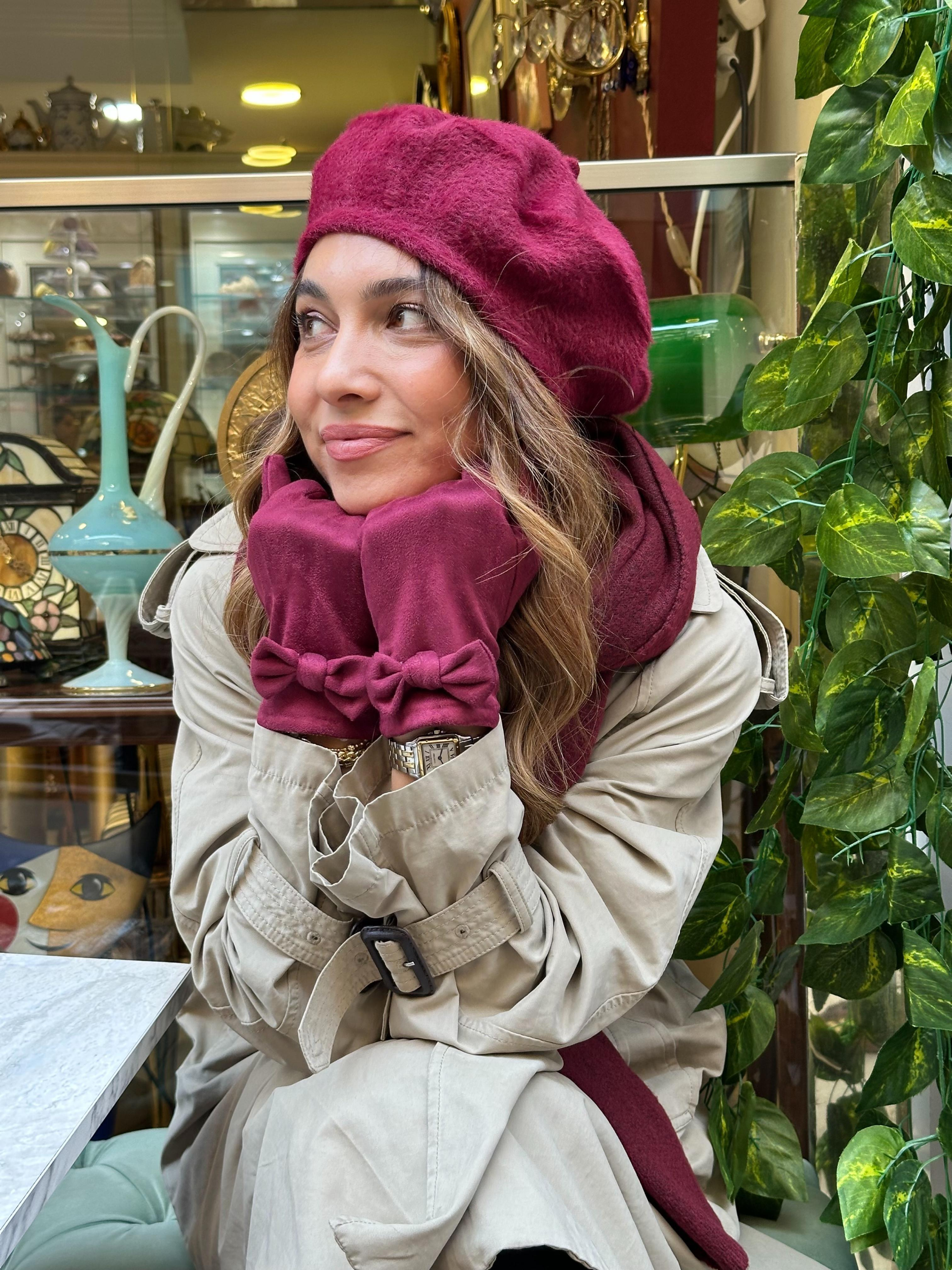 Dokunmatik Fiyonklu Eldiven Bordo (20605)