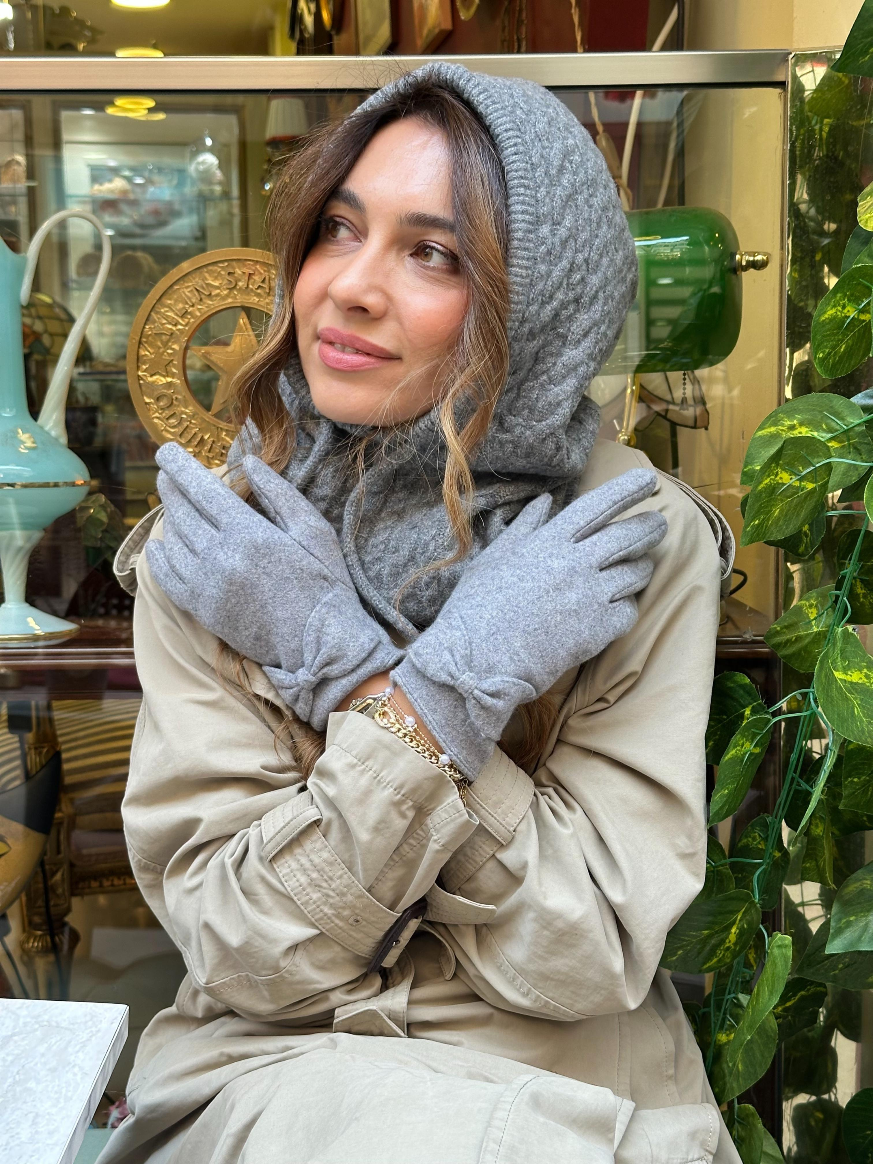 Dokunmatik Fiyonklu Eldiven Gri