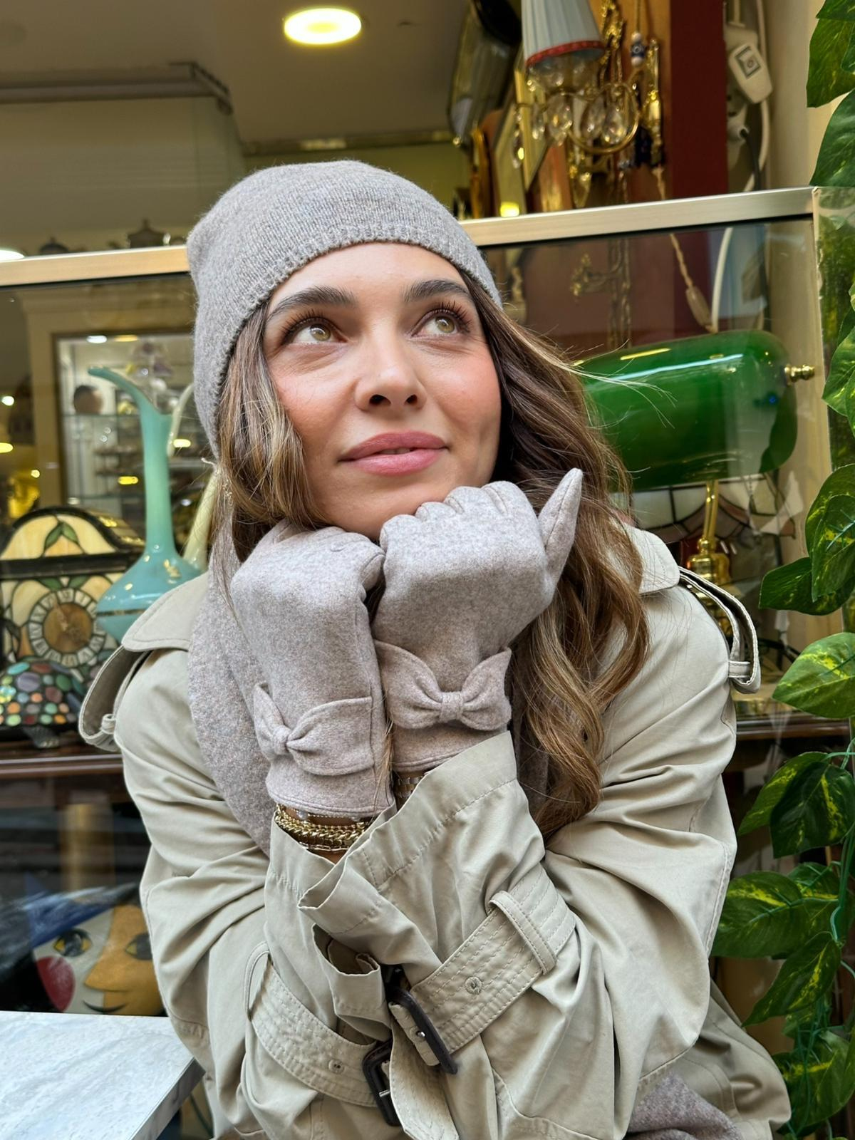 Dokunmatik Fiyonklu Eldiven Vizon (20605)