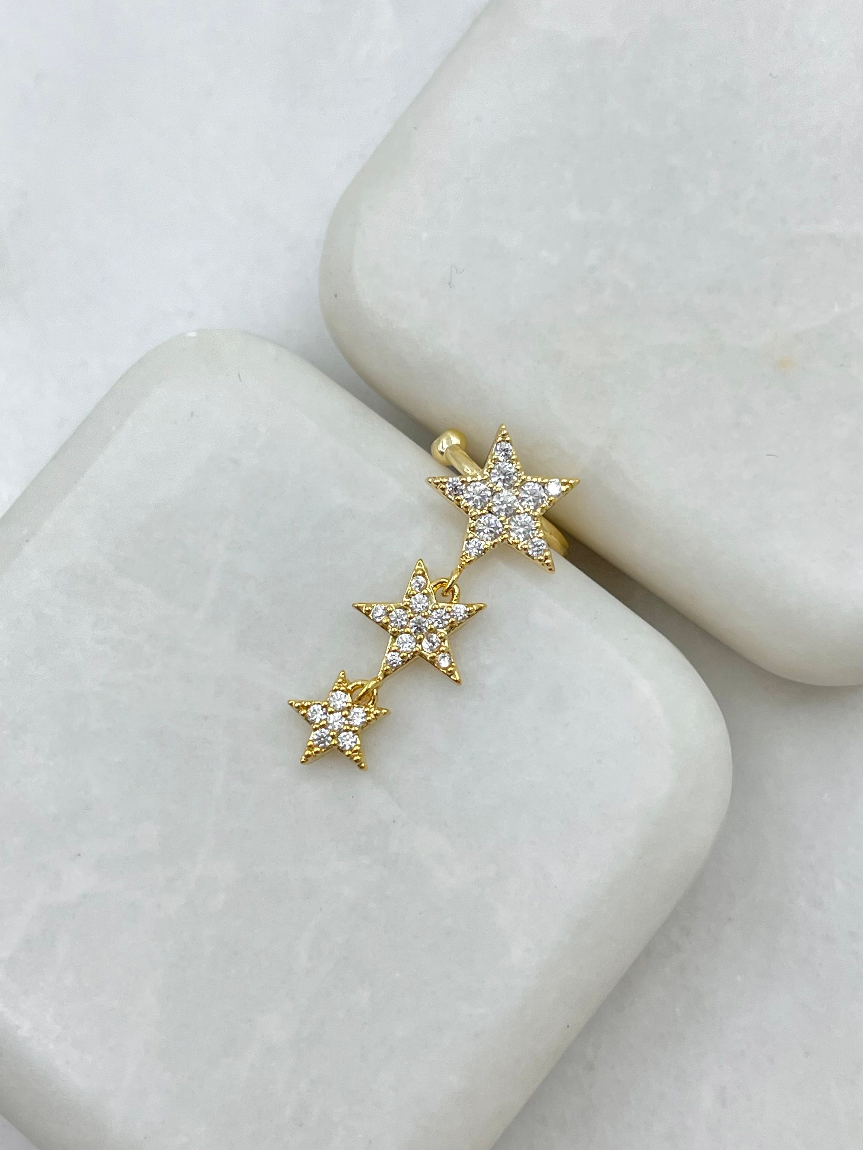 Gömme Taşlı Yıldız Sallantılı Kıkırdak Küpe Gold