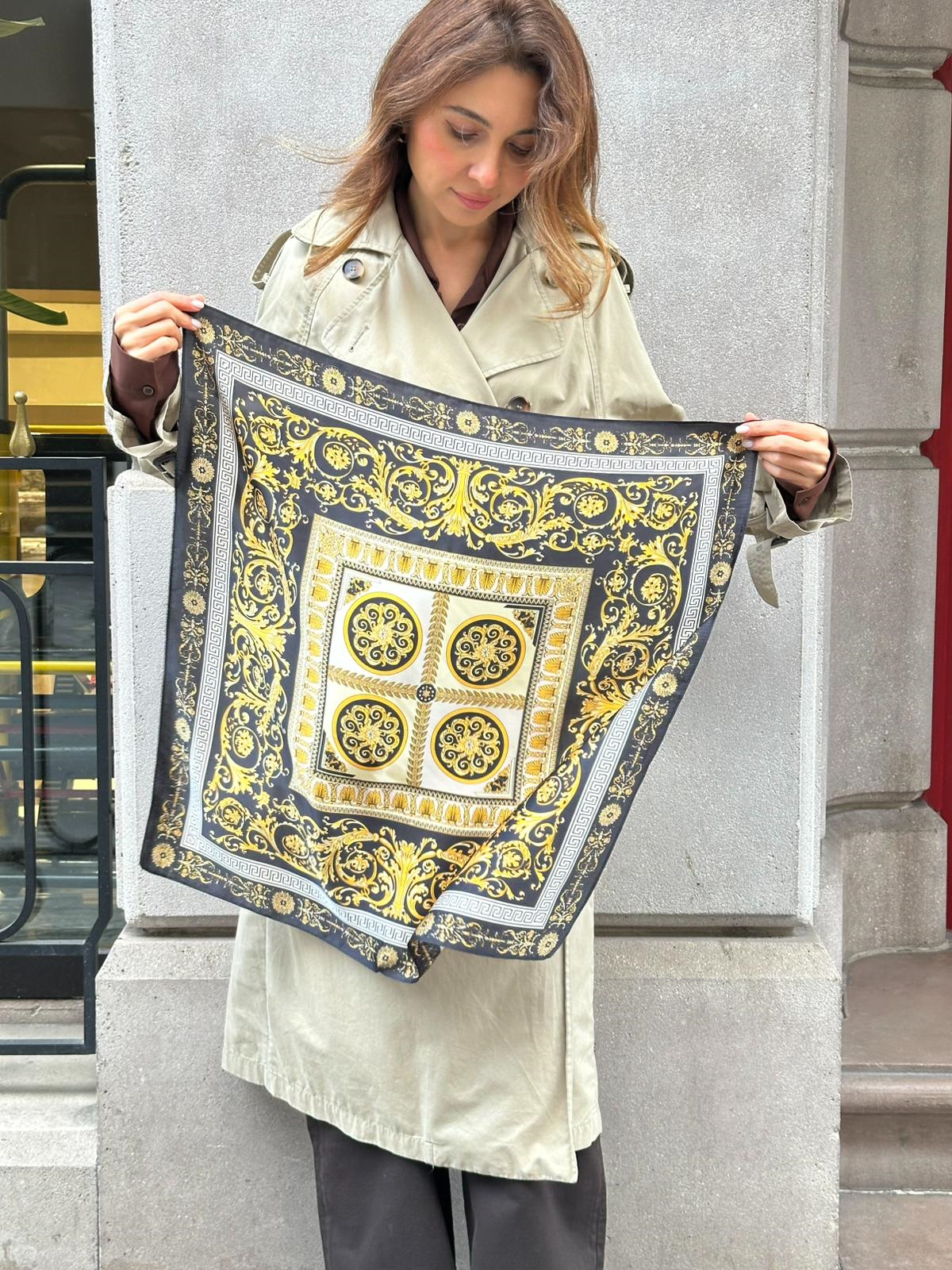 Gold Desenli Fular 70 x 70 cm Renkli