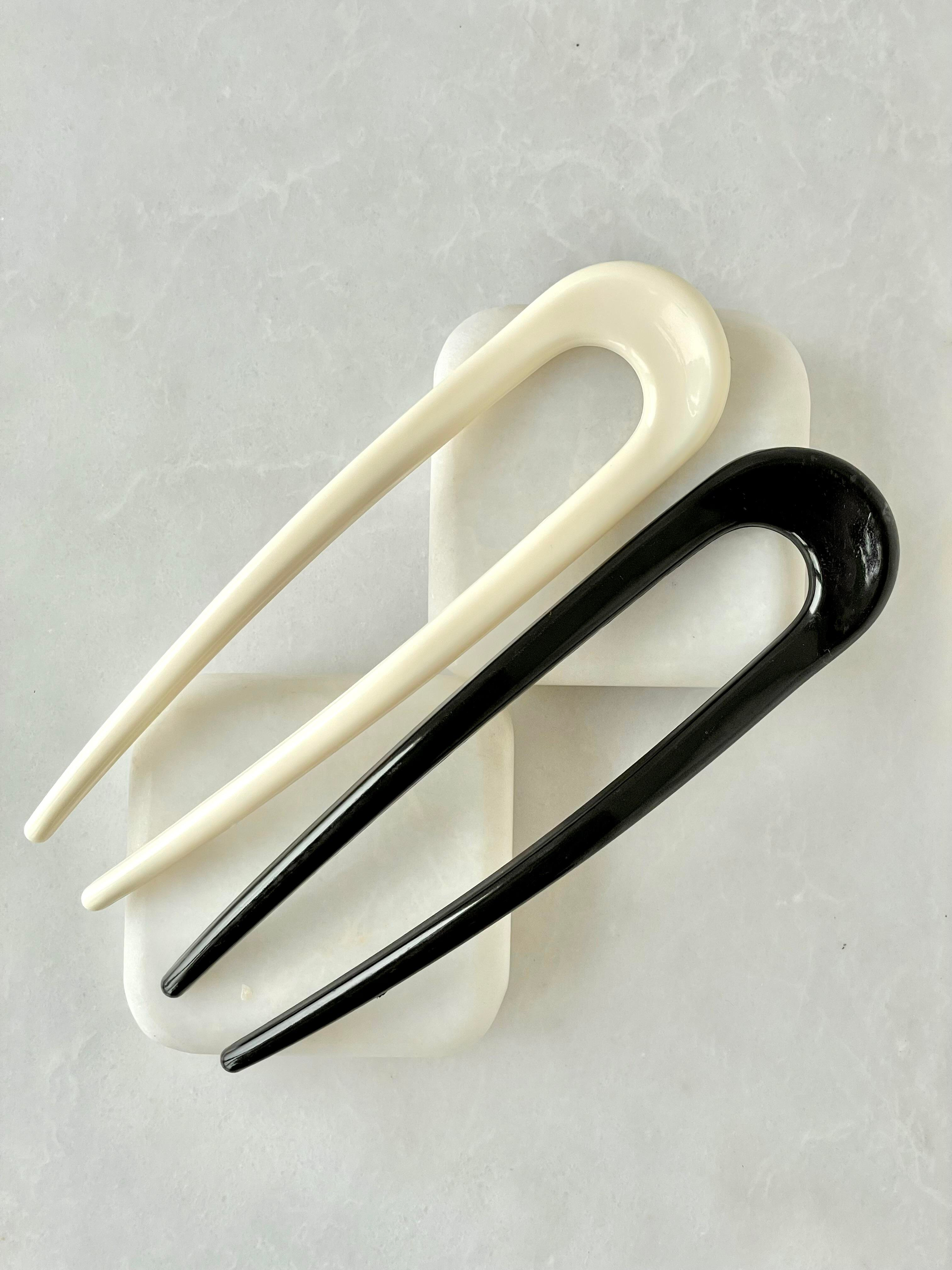İkili Çubuk Model Topuz Tokası Krem-Siyah