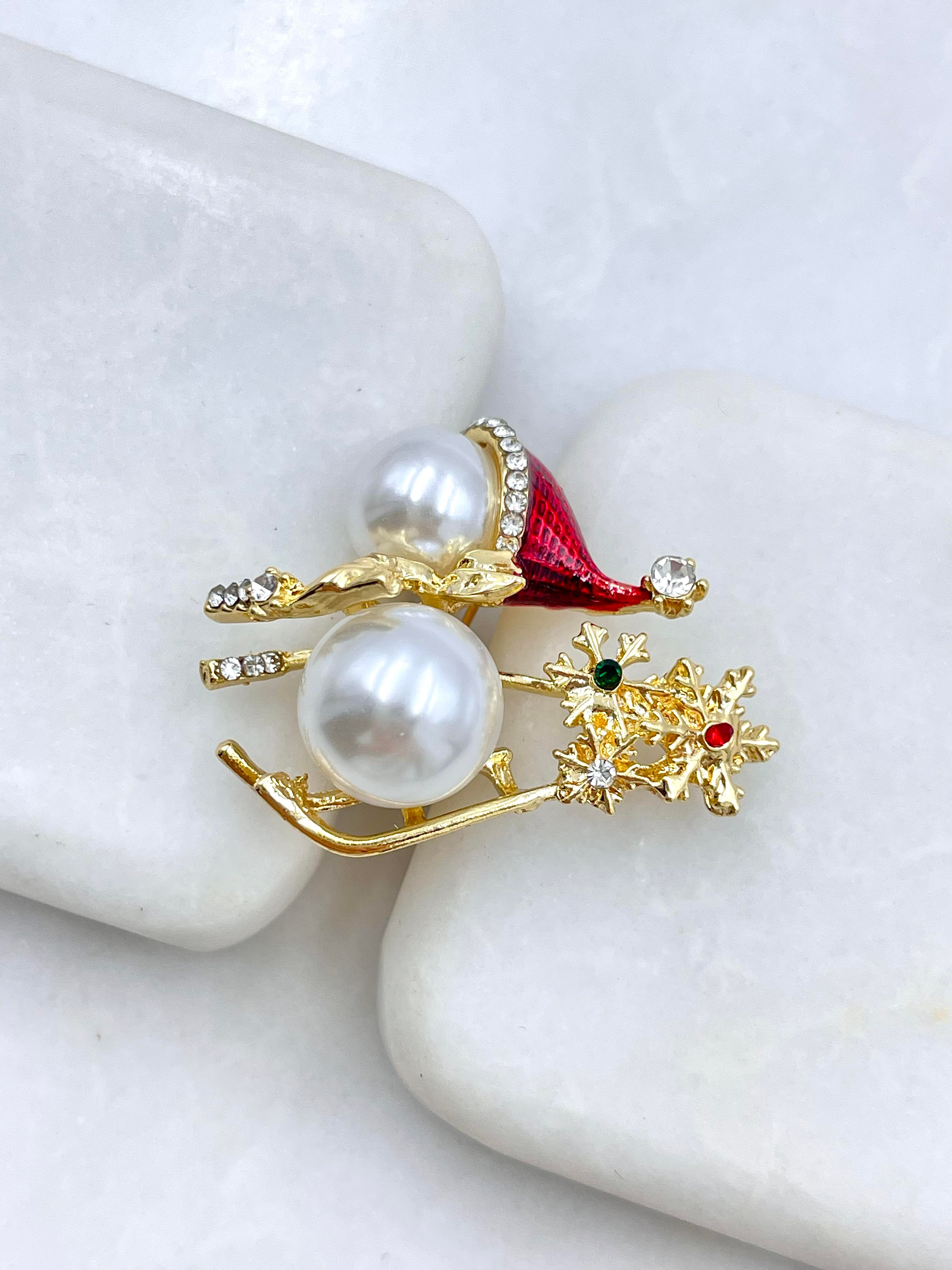 İncili Kardan Adam Broş Gold