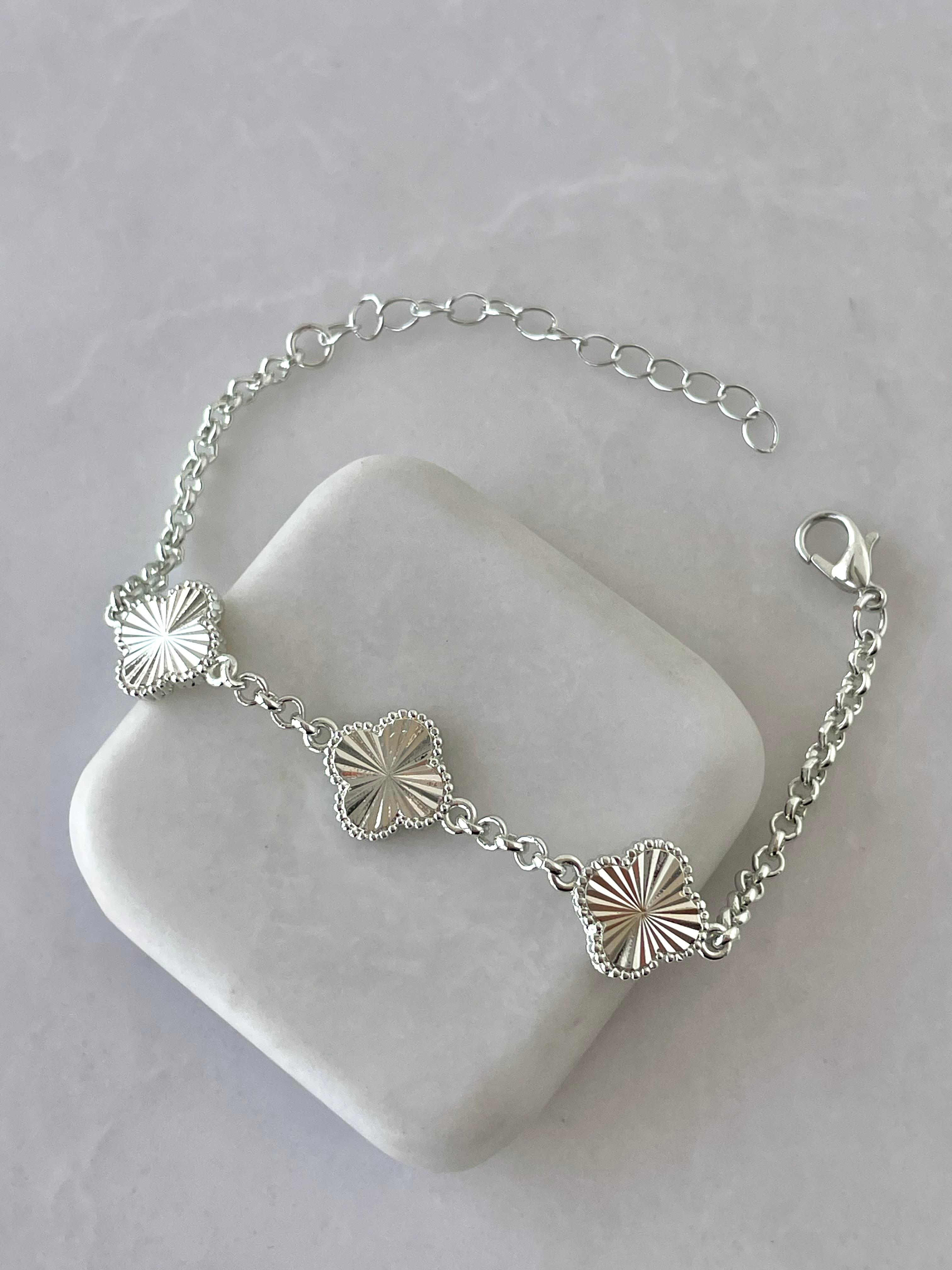 Lazer Kesim Üçlü Yonca Bileklik Gümüş