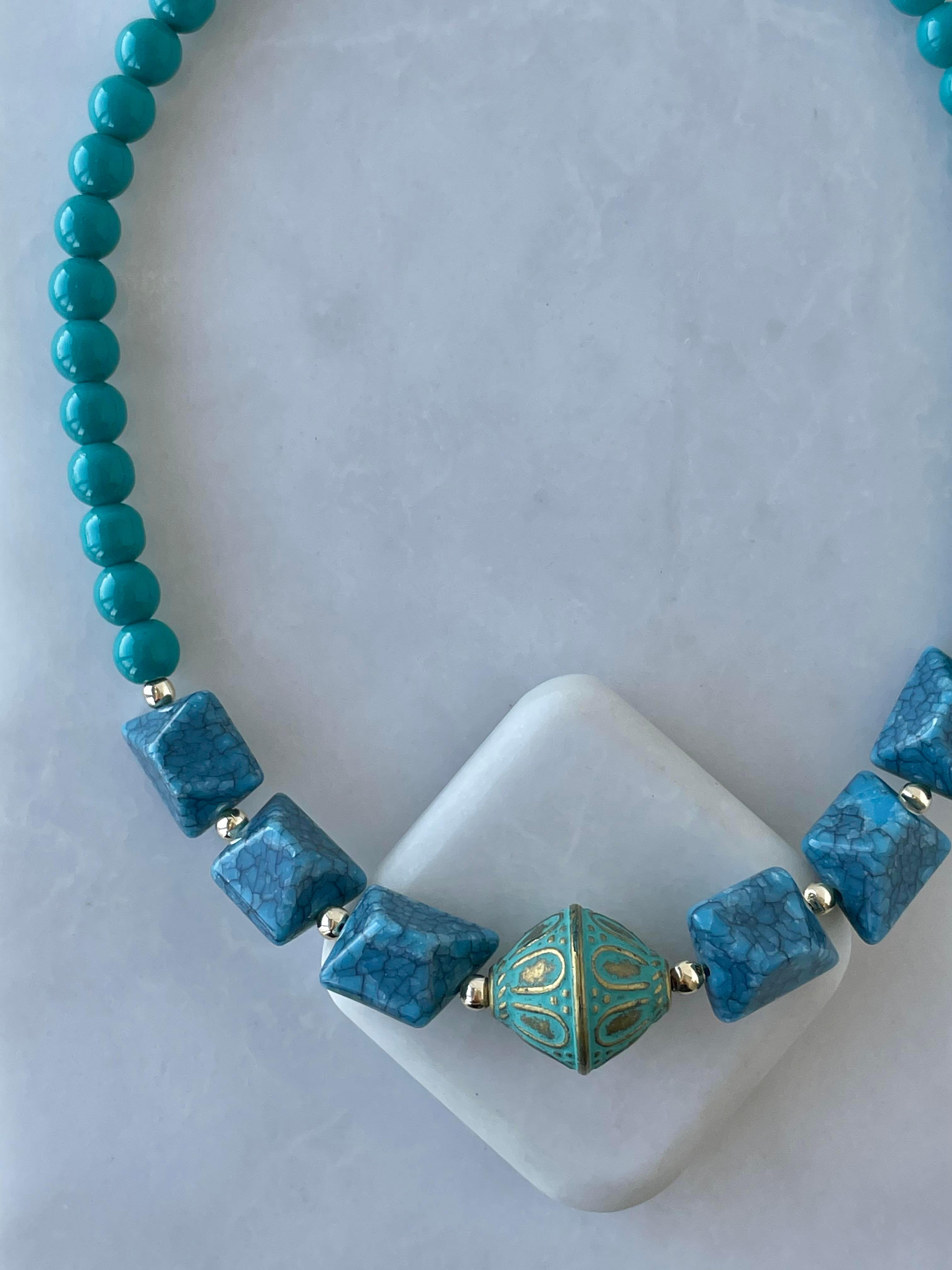Mavi Doğal Taş Görünümlü Etnik Kolye