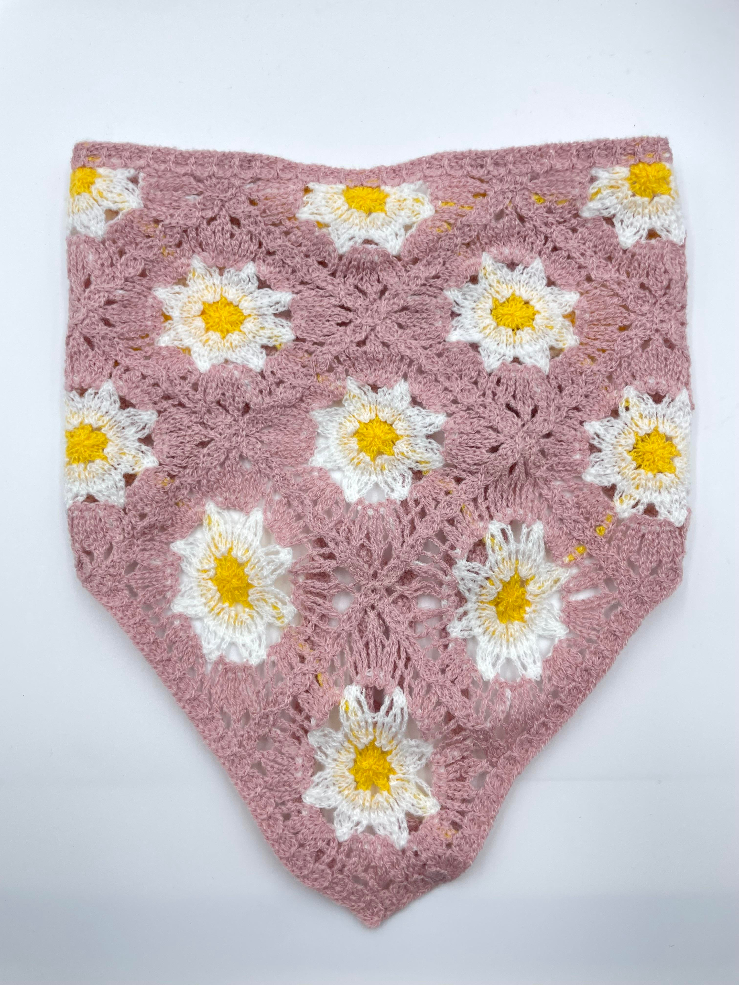 Papatya Desenli Örgü Bandana Pembe
