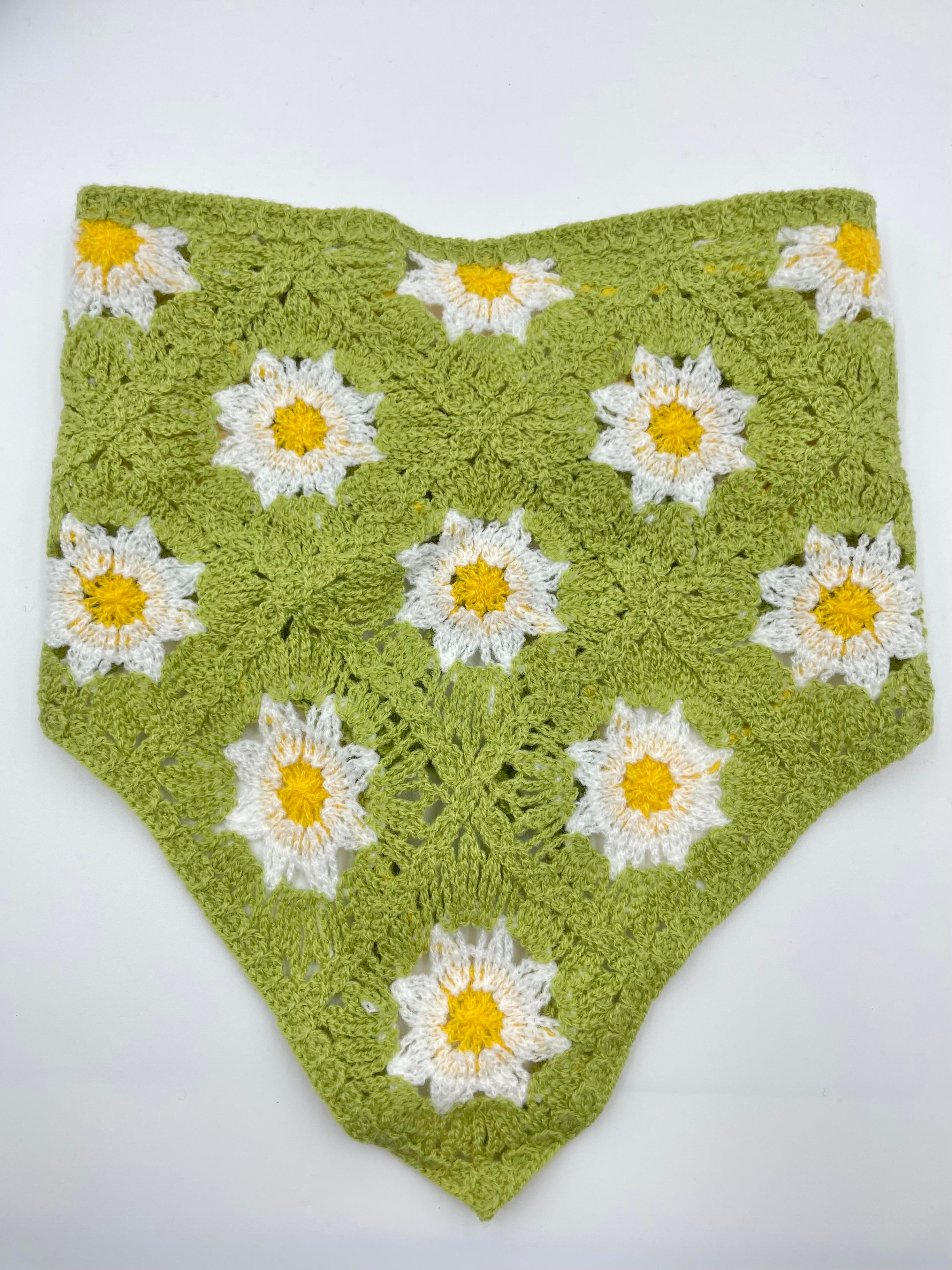 Papatya Desenli Örgü Bandana Yeşil (20419)