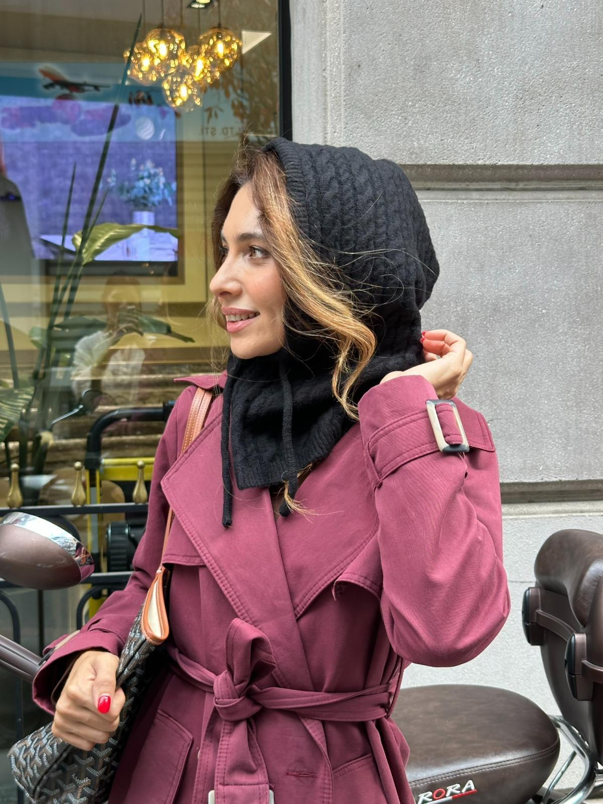 Yumuşak Dokulu Örgü Desenli Balaclava Siyah